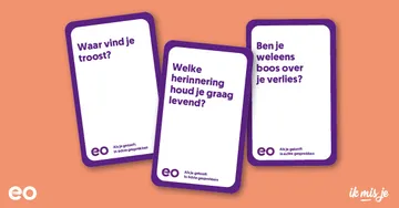 Wanneer je iemand mist, voel je dat op de meest onverwachte momenten. Rouwen doe je vaak alleen, maar bij de EO is ruimte om te delen. Vind troost en herkenning in geloof, hoop en liefde. Praat mee over rouw. Jouw verhaal doet ertoe.