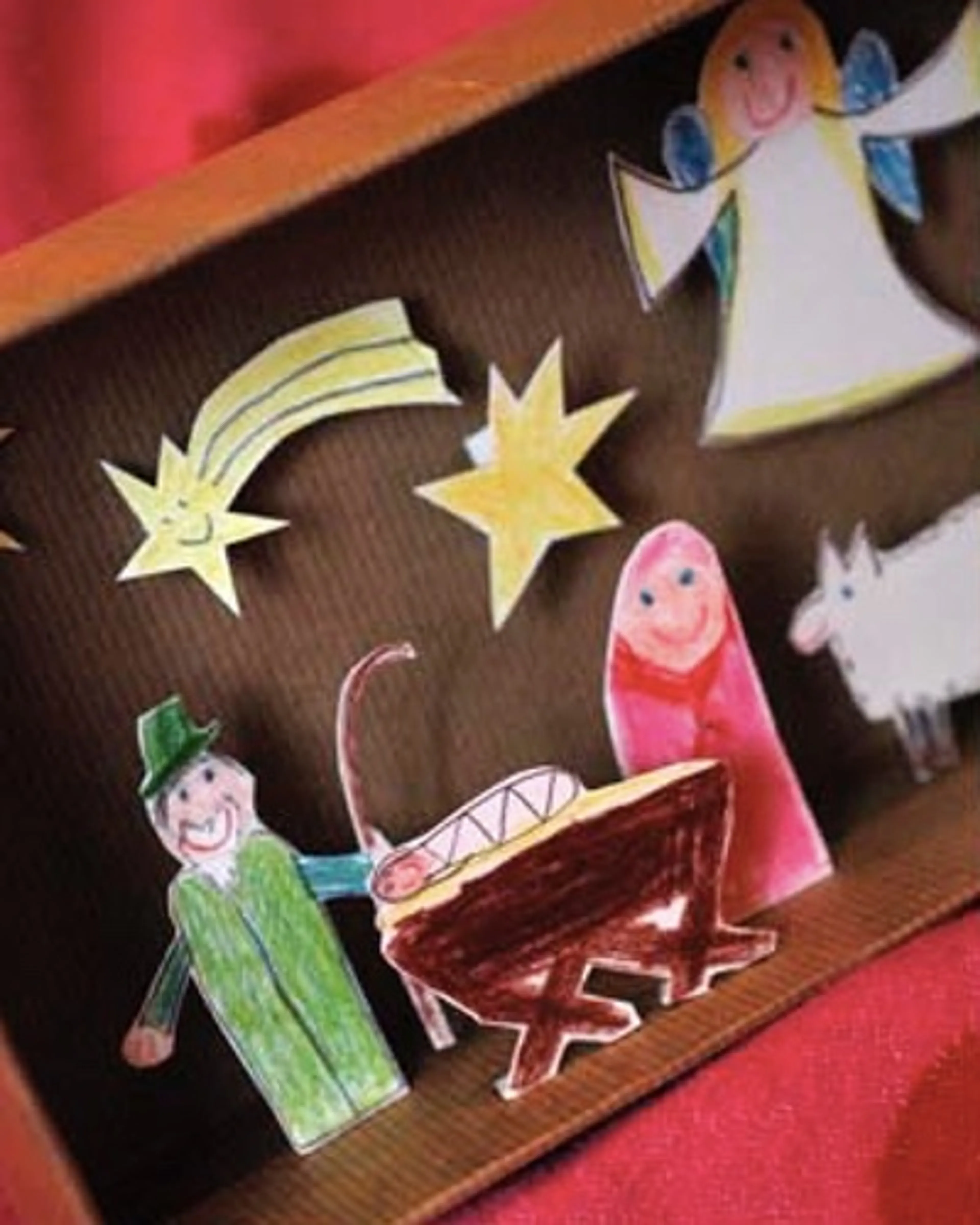Teken Jozef & Maria en het kindje Jezus, de herders met hun schapen, de wijzen uit het Oosten en maak zo eenvoudig een mooie kerststal.