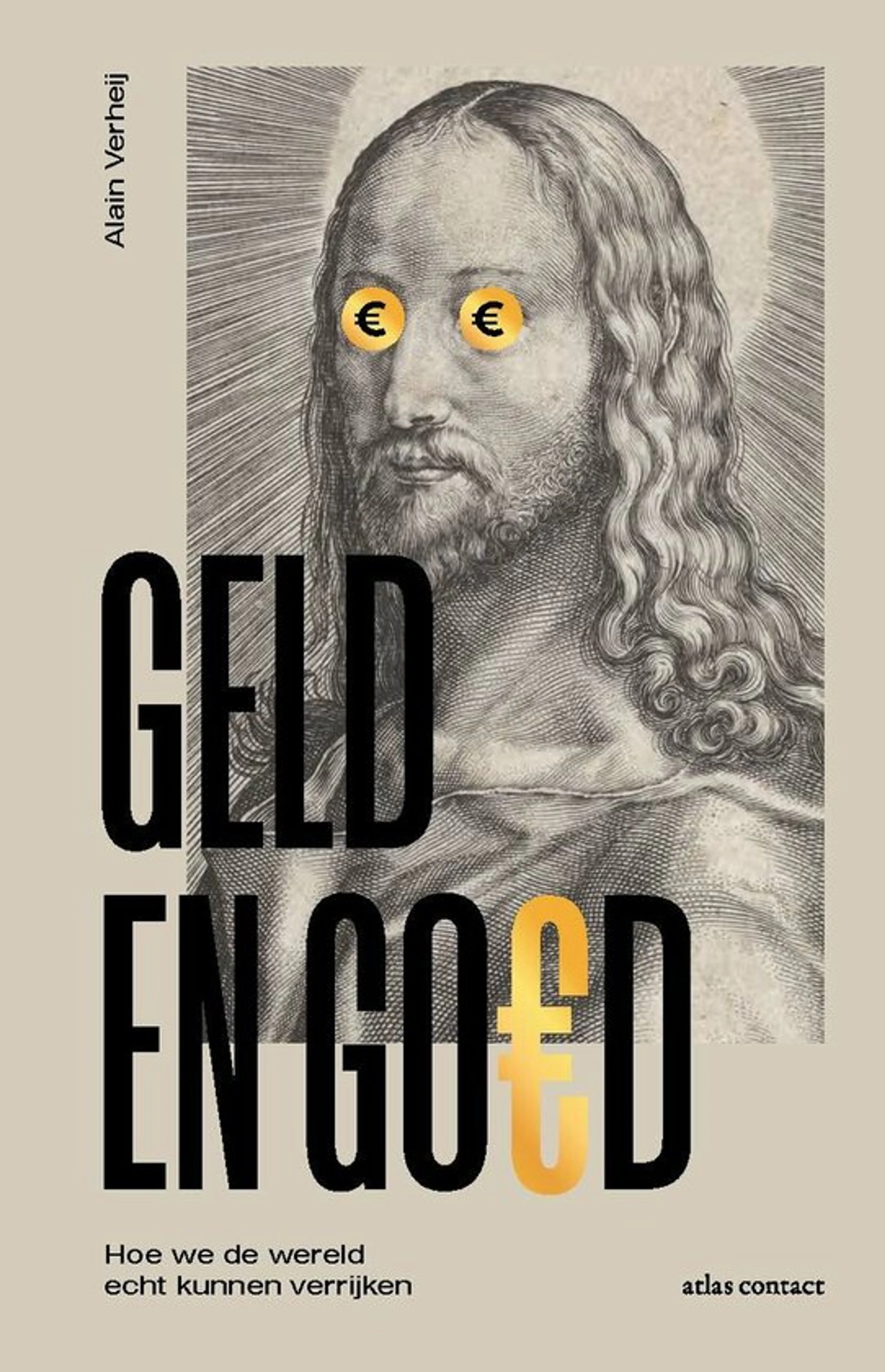 Als je God en de religieuze traditie wegknipt uit je leven, denk ik dat het vacuüm zich vult met iets anders. Er komen andere waarden en doelen in de plaats. In sommige gevallen is het Mammon die de oude religieuze waarden verdringt. Op de cover van mijn boek zie je Jezus met muntjes in z’n ogen, alsof Jezus is vermoord door de euro. Jezus heeft verloren van het geld.’