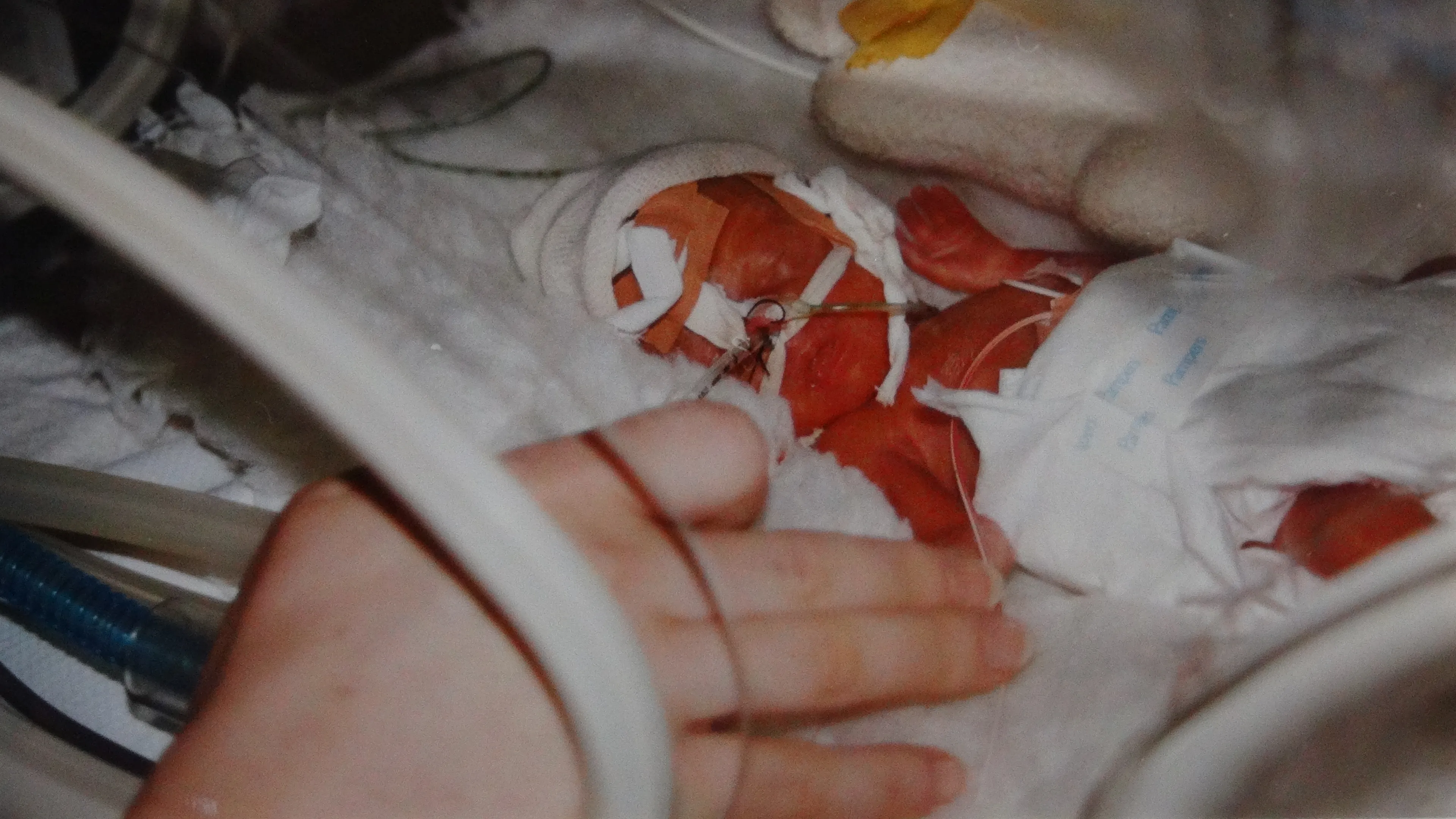 Niet veel later bevalt haar moeder in het ziekenhuis via een natuurlijke bevalling van Amber en haar broertje. “We werden geboren met 24 weken en 6 dagen. Destijds was dat onder de behandelgrens.” Baby’s die in die tijd vóór 26 weken zwangerschap ter wereld kwamen, werden in principe niet behandeld. Volgens de statistieken van toen waren ze niet levensvatbaar. “Maar,” licht Amber toe, “mijn tweelingbroertje was ietsje groter dan ik en woog daarom ook meer. En omdat hij als eerste werd geboren, is er op basis van zijn gewicht en conditie gezegd: ‘Oké we gaan hem toch behandelen’. Dat die keus totaal ongebruikelijk was, ontdekte ik pas vorig jaar. Ik werd toen namelijk geïnterviewd samen met Lien de Proost, een medisch ethicus die onderzoek deed naar de ethiek rondom de levensvatbaarheidsgrens. Tot mijn verbazing vertelde ze dat destijds alleen werd gekeken naar het aantal geboorteweken: werd je vroeger dan 26 weken geboren, dan had je pech.”