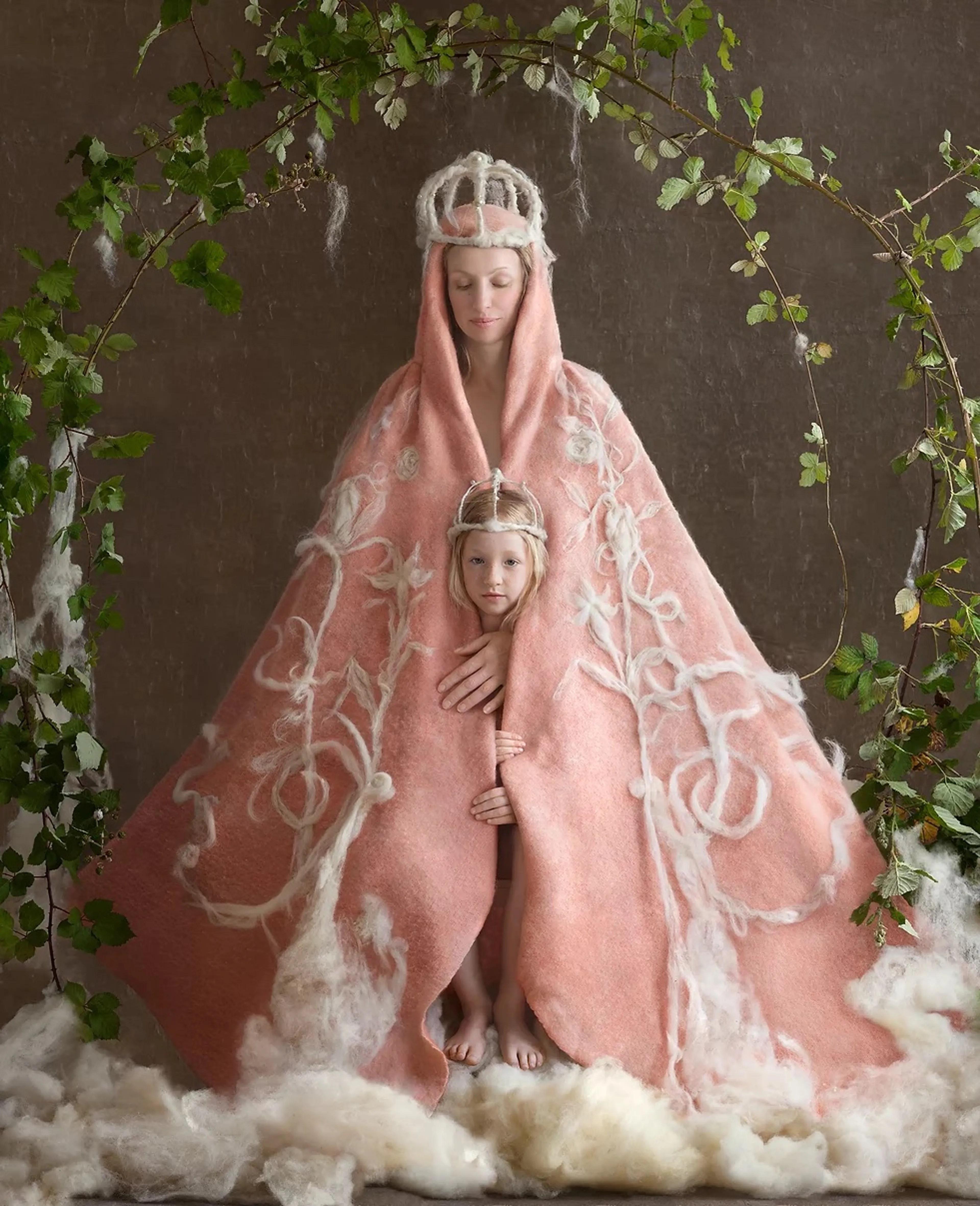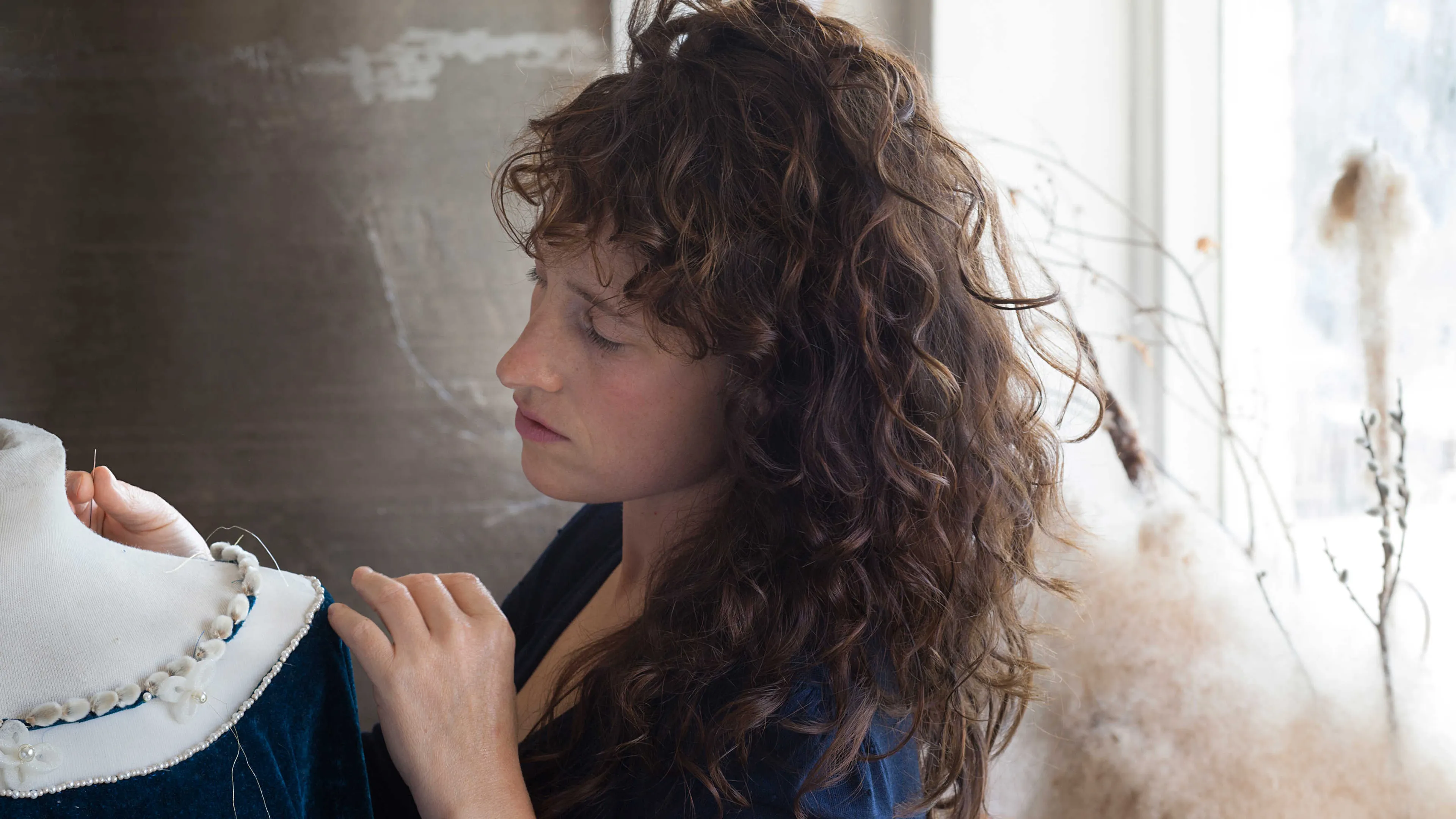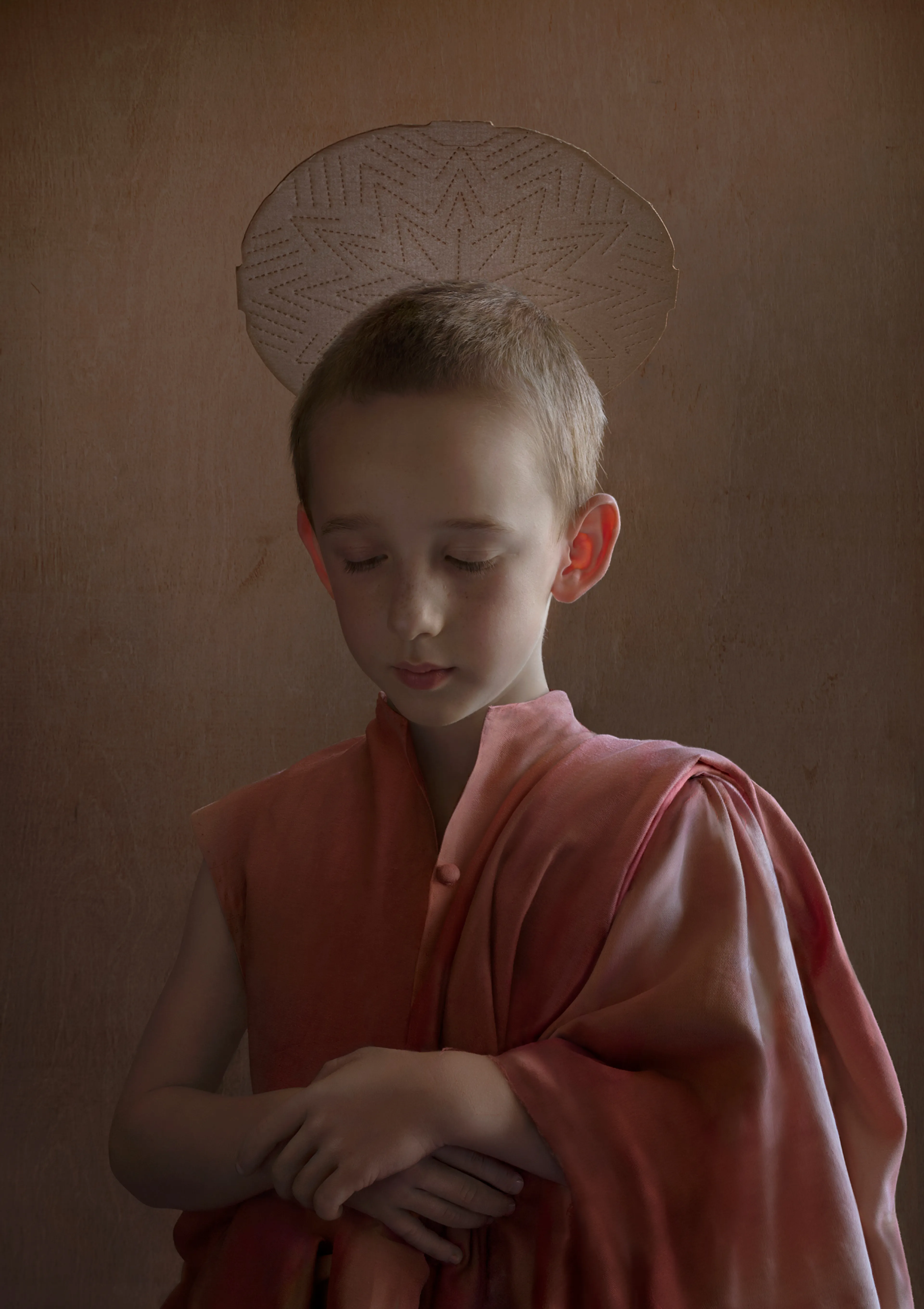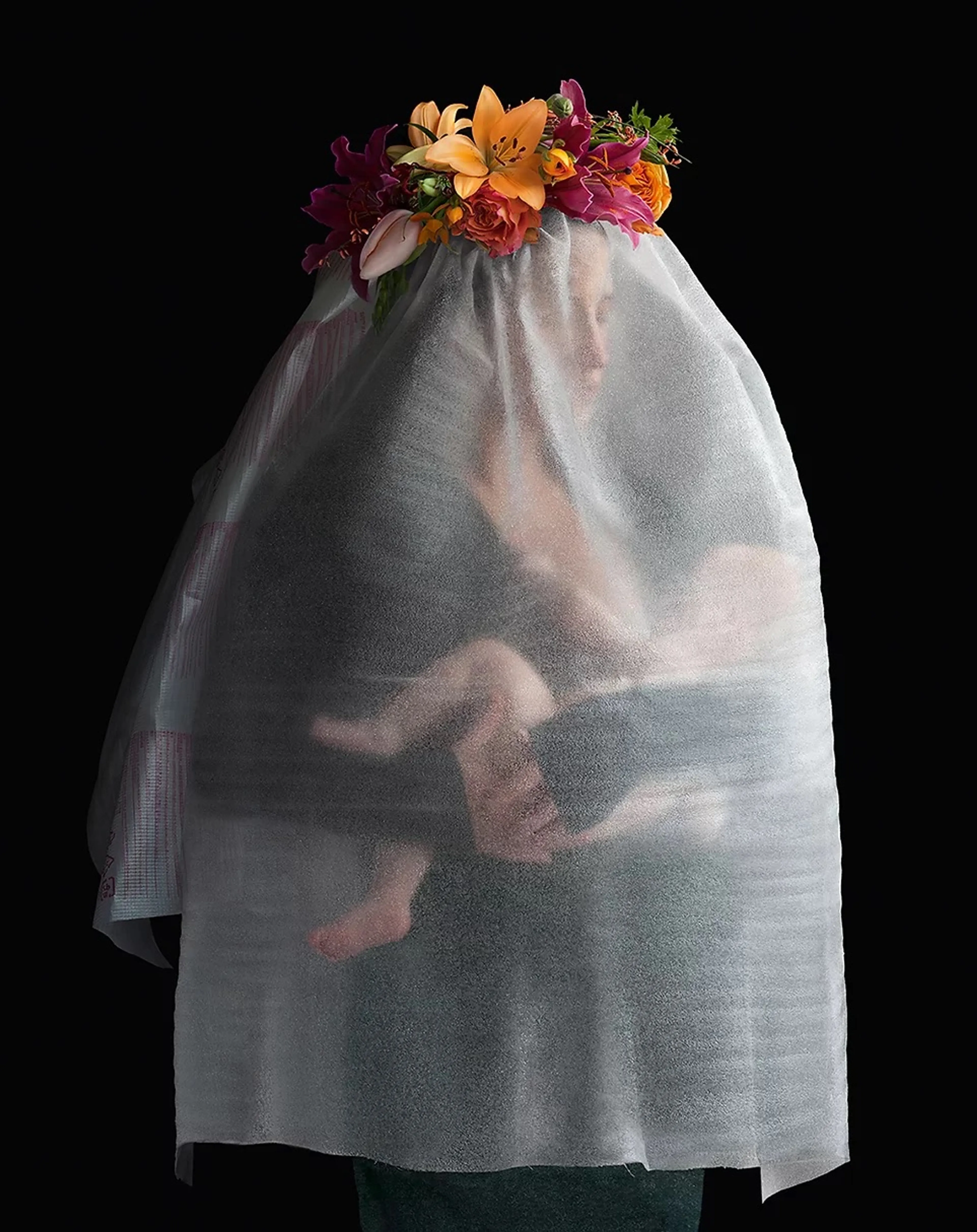 In het atelier van Suzanne Jongmans (coupeur, beeldhouwer, kostuumontwerper en fotograaf) in Breda hangen enkele grote afdrukken van haar werk: ingetogen portretten waar de inspiratie van de oude meesters vanaf spat. Boeken over die kunstenaars uit de 15e, 16e en 17e eeuw liggen op tafel. Aan wand hangen kleine schetsen en losse materialen: een hoofdkapje van inpakfolie. Het contrast in materiaalgebruik typeert Suzannes werk, zoals bloemen en wol, maar ook parels en piepschuim.
