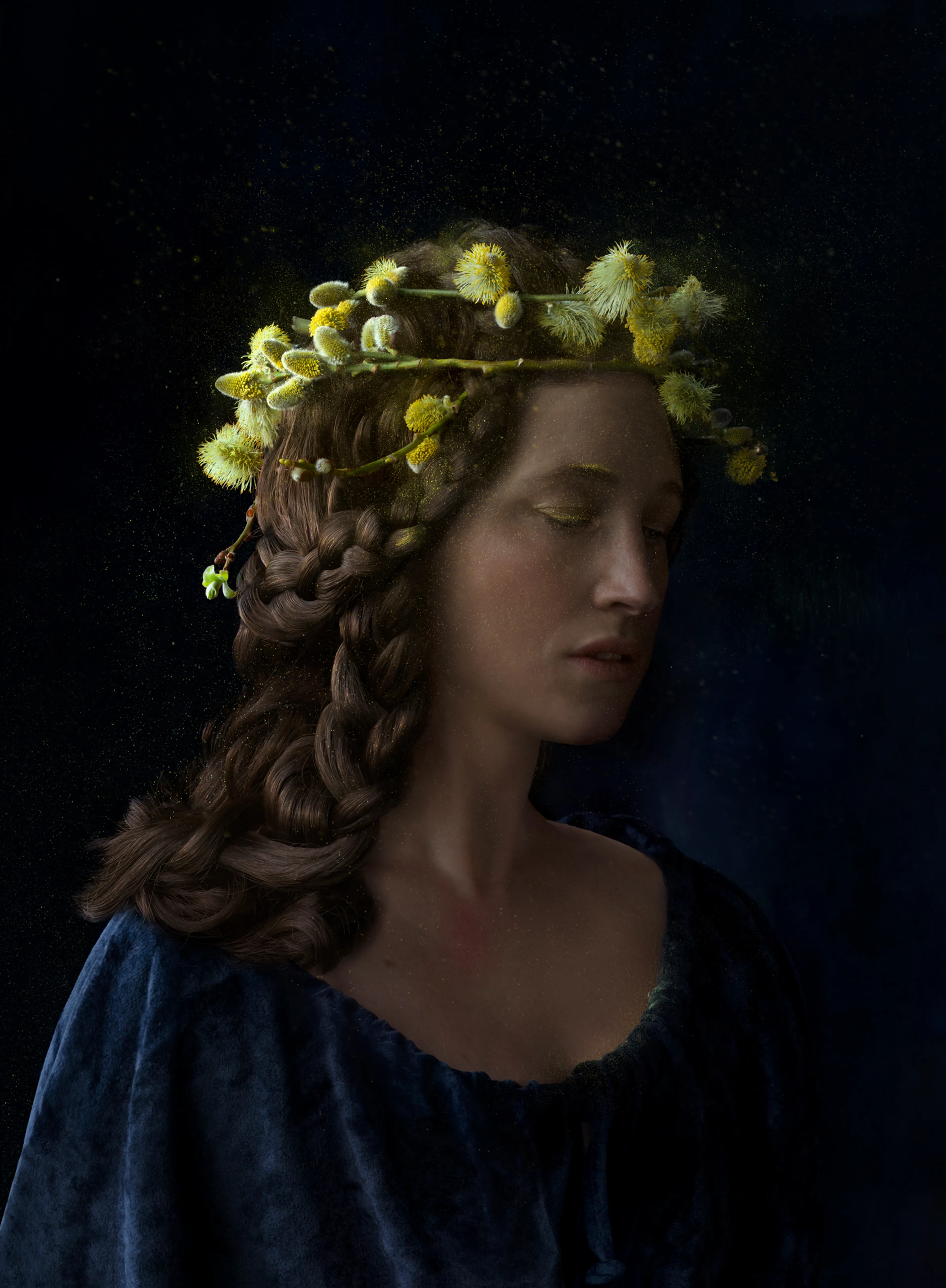 ‘Ik laat het graag gebeuren. Ik heb als kind altijd graag naar het werk van oude meesters gekeken, zoals Van Eyck, Rogier van der Weyden en Vélasquez, omdat ik die gezichten zo mooi ingetogen en zacht vond. Er straalt een rust uit waar ik blijkbaar zelf veel behoefte aan heb. Als ik zelf stilval, dan voel ik waar ik behoefte aan heb of wat er door mij heen moet gebeuren, wat op dit moment de bedoeling is.