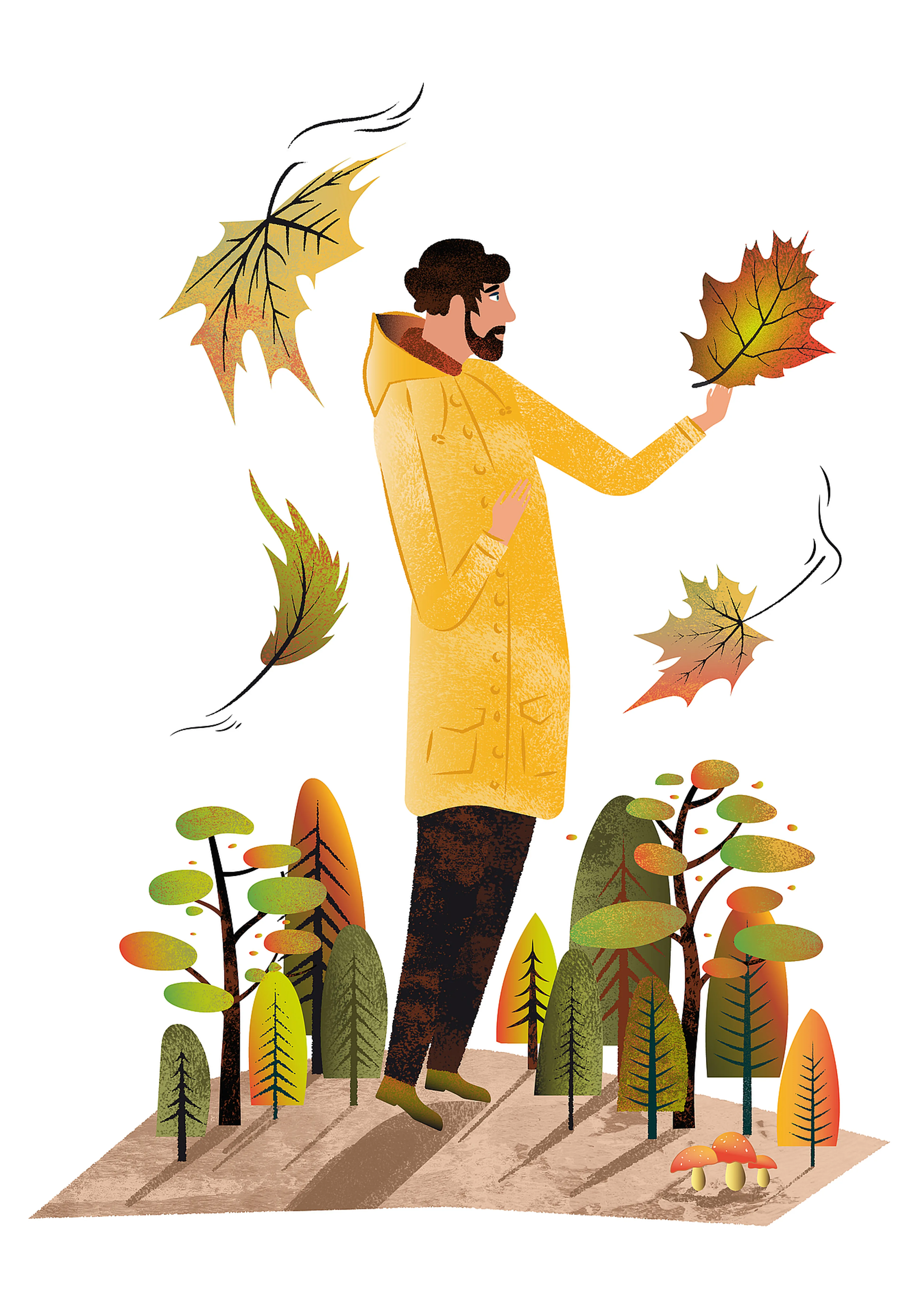 Hij loopt verder, het rode blad in zijn hand. Het contrasteert scherp met zijn gele regenjas. “Het is Gods adem die ons doet leven. Hij blaast ons het leven in, en onze adem keert naar Hem terug. Ik weet maar één oplossing. Diep ademhalen.”
