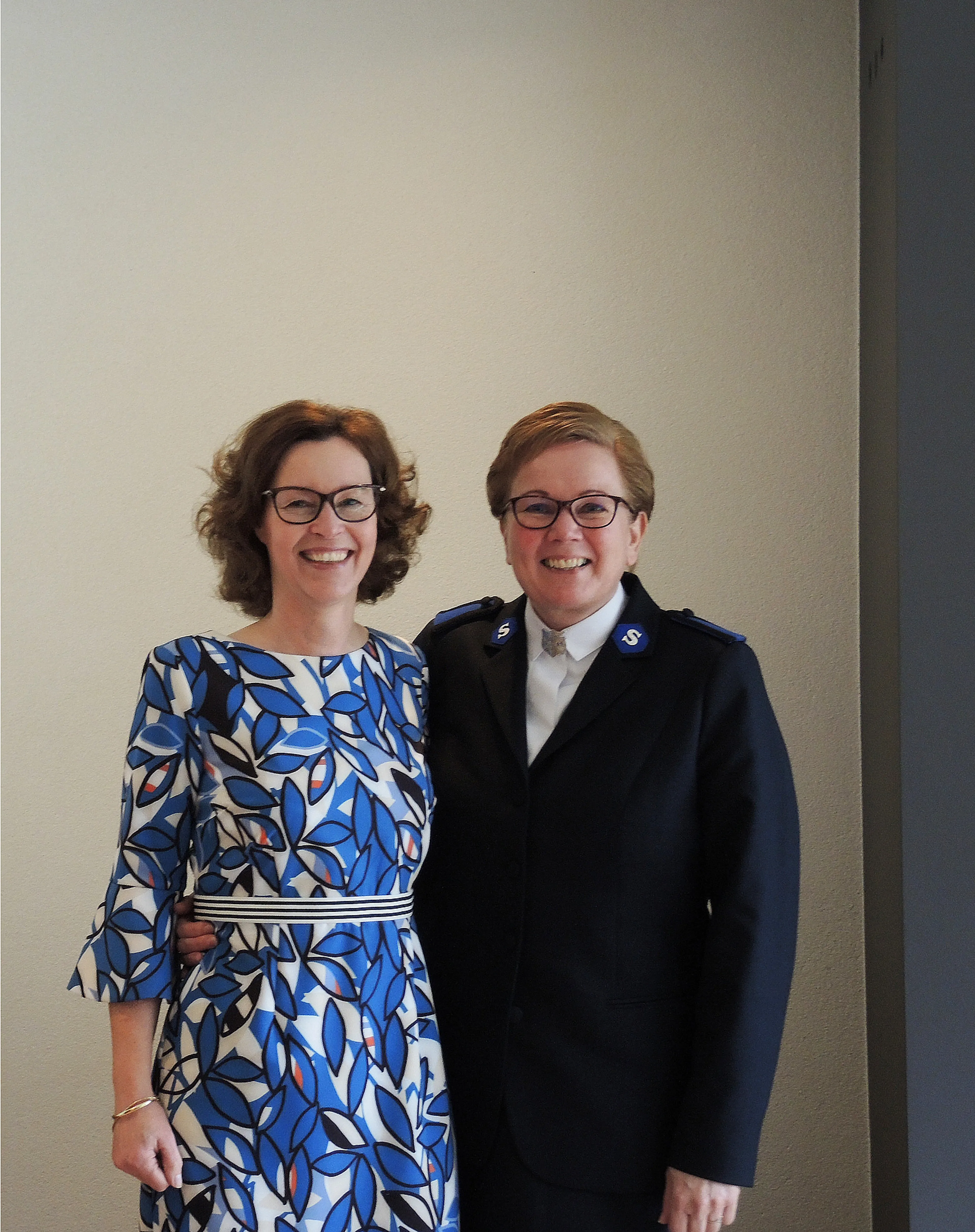 Tine: “Op een gegeven moment had ik heel sterk het gevoel dat God een bedoeling met mij had in het Leger. Dat vond ik erg moeilijk. Hoe moest dat dan met mijn man, kinderen en familie in de PKN? Toen zei majoor Hanna Kolijn, van Korps Vlaardingen van het Leger des Heils, tegen mij: ‘Tine, als je echt het gevoel hebt dat God hier een plan met jou heeft, moet je misschien stoppen met bedenken waarom het níet kan, en proberen te bedenken hoe het wél kan.’ Dit was een levensles voor mij. Ik vroeg me wel af wat dit met de vriendschap tussen Jacomine en mij zou doen. Maar Jacomine, die naar een reformatorische kerk gaat, luisterde gewoon naar mij en begreep dat ik wilde uitzoeken wat God met mij voorhad in het Leger. Zo werd ik heilssoldaat in een dienst waar mijn gezin, familie en leden van de PKN bij aanwezig waren. Jacomine: “Ik denk dat Tine als mens heel erg veranderd is sinds ze bij het Leger des Heils ging. Hier heeft ze echt haar doel gevonden.”
