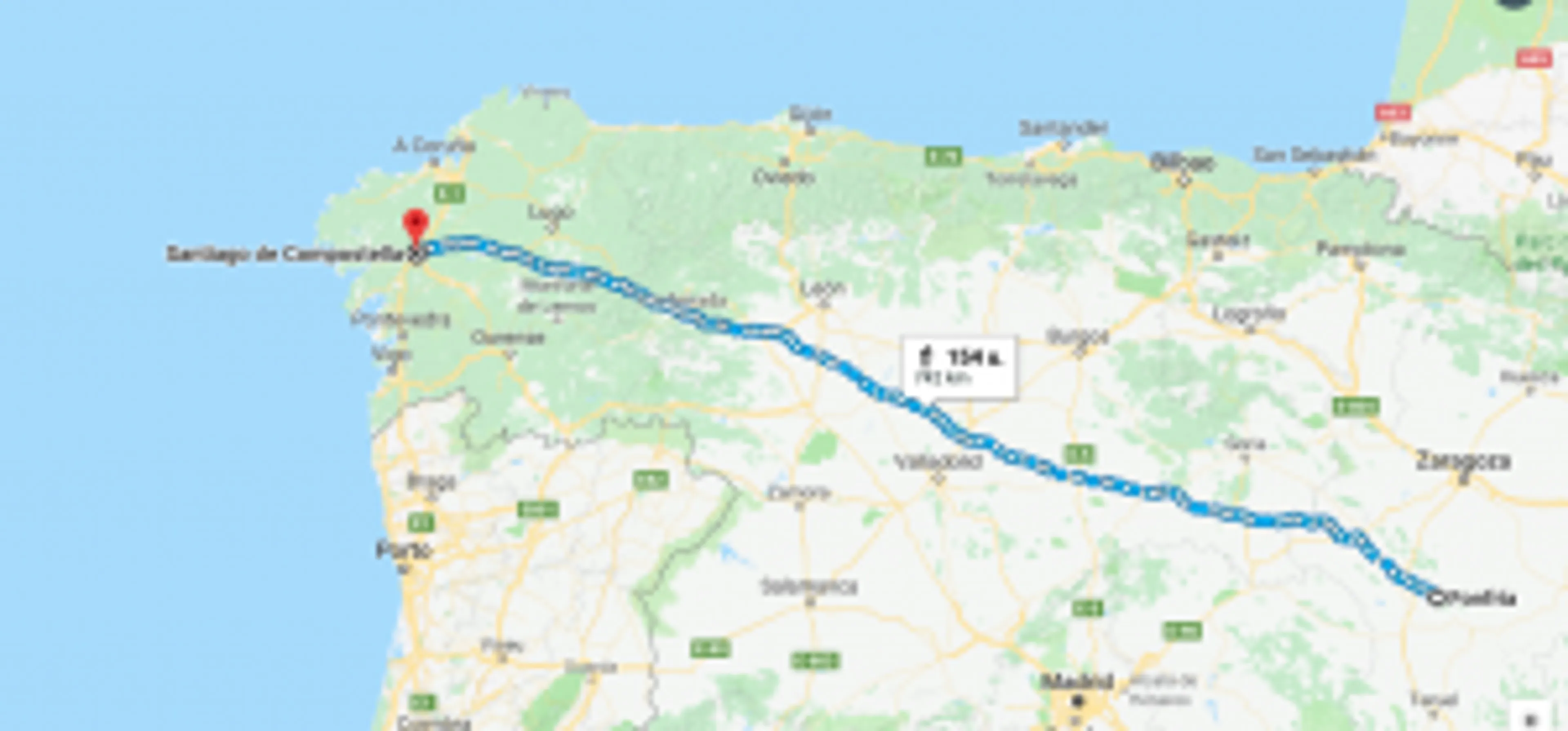Je hebt de regen gezien hé, en de modder op de wegen.’ Ik knikte, het was de laatste week meer water dan pad. ‘En ik liep moeilijk met een wandelstok, dus ik was al voorzichtig. Ik loop acht uur over een stukje waar anderen vier uur over doen. Daarom zou ik ook alleen de laatste honderd kilometer naar Santiago doen.