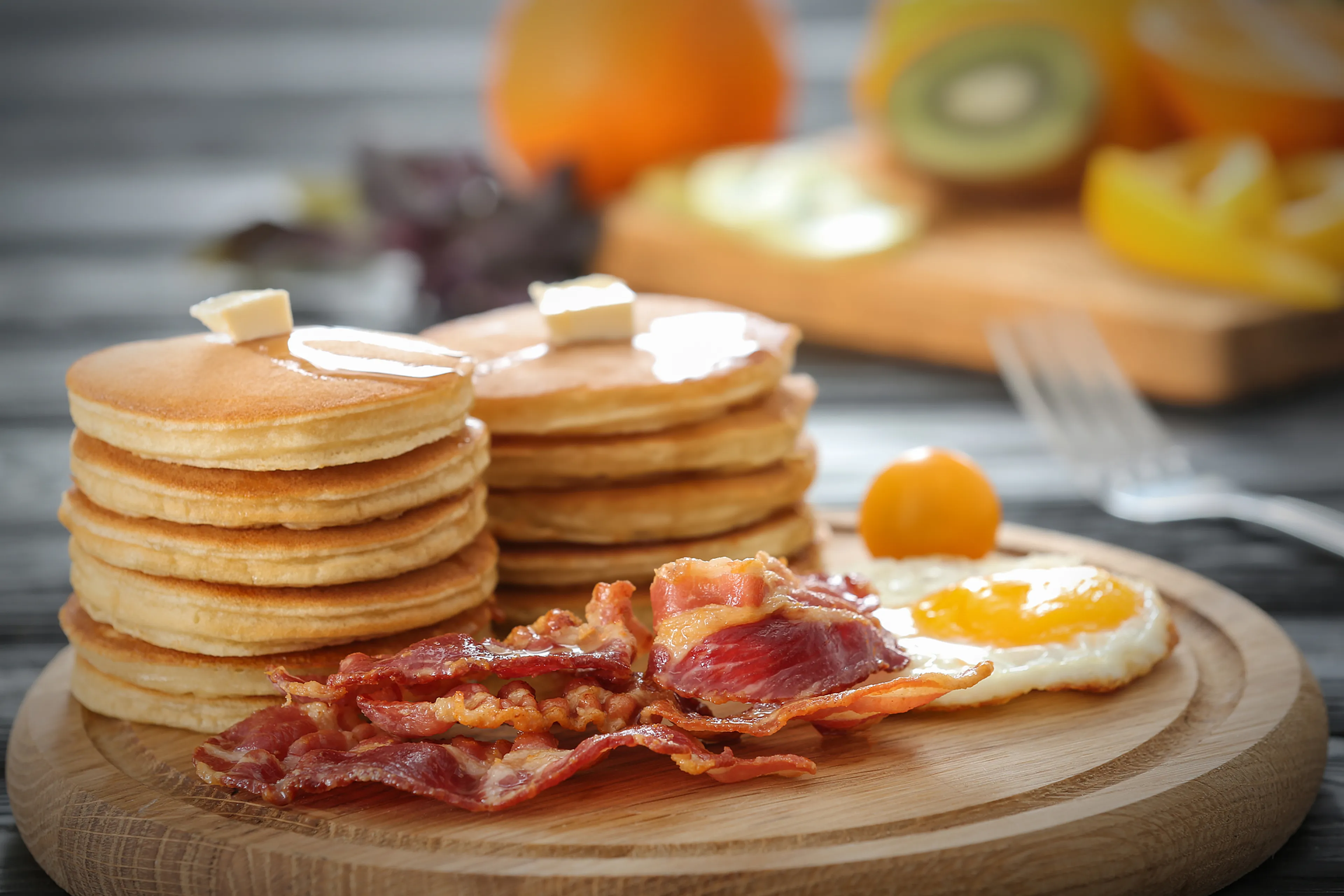 Het typische Amerikaanse ontbijt bestaat uit pannenkoeken met roerei en bacon. Dit keizer ontbijt stilt de grote honger in de ochtend. In combinatie met een stukje boter en wat schenkstroop is het helemaal compleet. Lees hier hoe je dit extravagante ontbijt klaarmaakt.