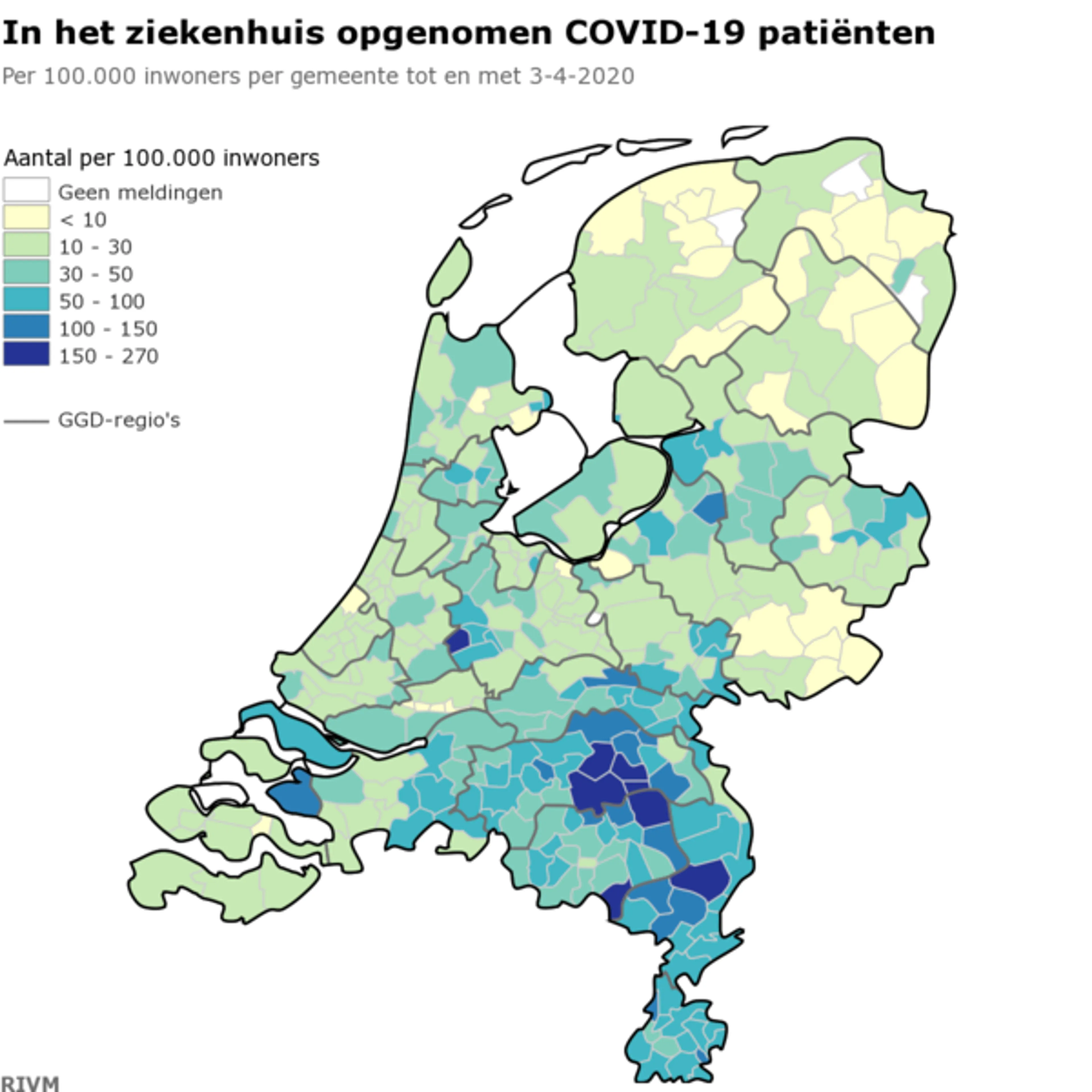 Ondertussen kleurt op de kaart die het RIVM verspreid, naast Noord-Brabant, ook een deel van de biblebelt steeds donkerder. Zo is ook op de kaart hieronder te zien. Onder meer in Tholen, Oudewater en Heerde zijn relatief gezien veel patiënten in het ziekenhuis opgenomen met Covid-19. Het is in dat licht niet gek dat sommigen oproepen tot het helemaal verbieden van religieuze bijeenkomsten. Maar ondertussen blijft onduidelijk of het daadwerkelijk door de kerkdiensten komt. Want een verklaring voor de verspreiding van het virus heeft nog niemand.