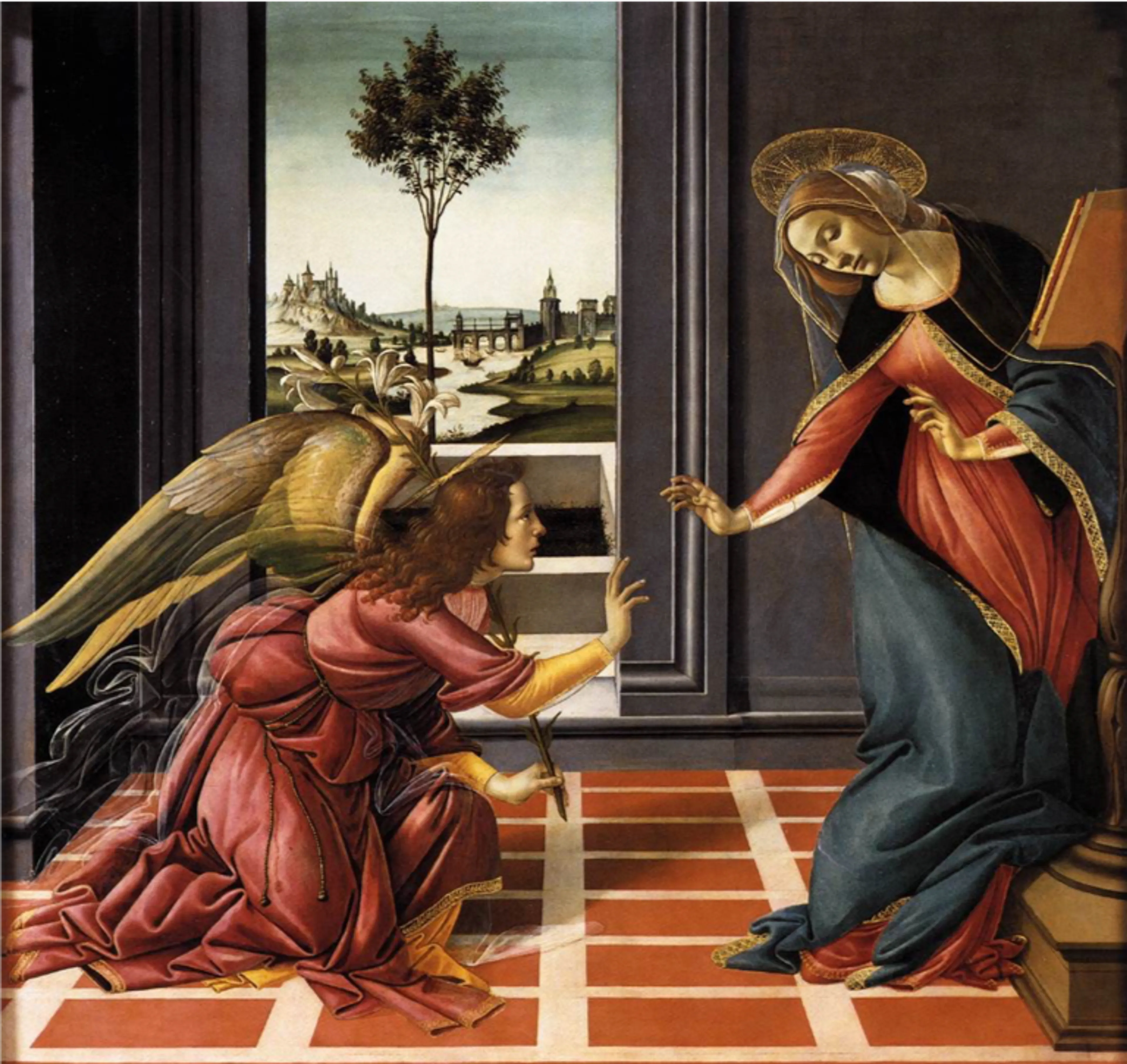 Bij de afbeelding: Sandro Botticelli schilderde schitterend de tweestrijd bij Maria tussen afstoten en ontvangen, maar ook de kwetsbaarheid van God in dit proces (vertegenwoordigd door zijn boodschapper Gabriël). God als afhankelijk, omdat hij ontvangen moet worden, vóór Hij zijn plan kan doorvoeren.