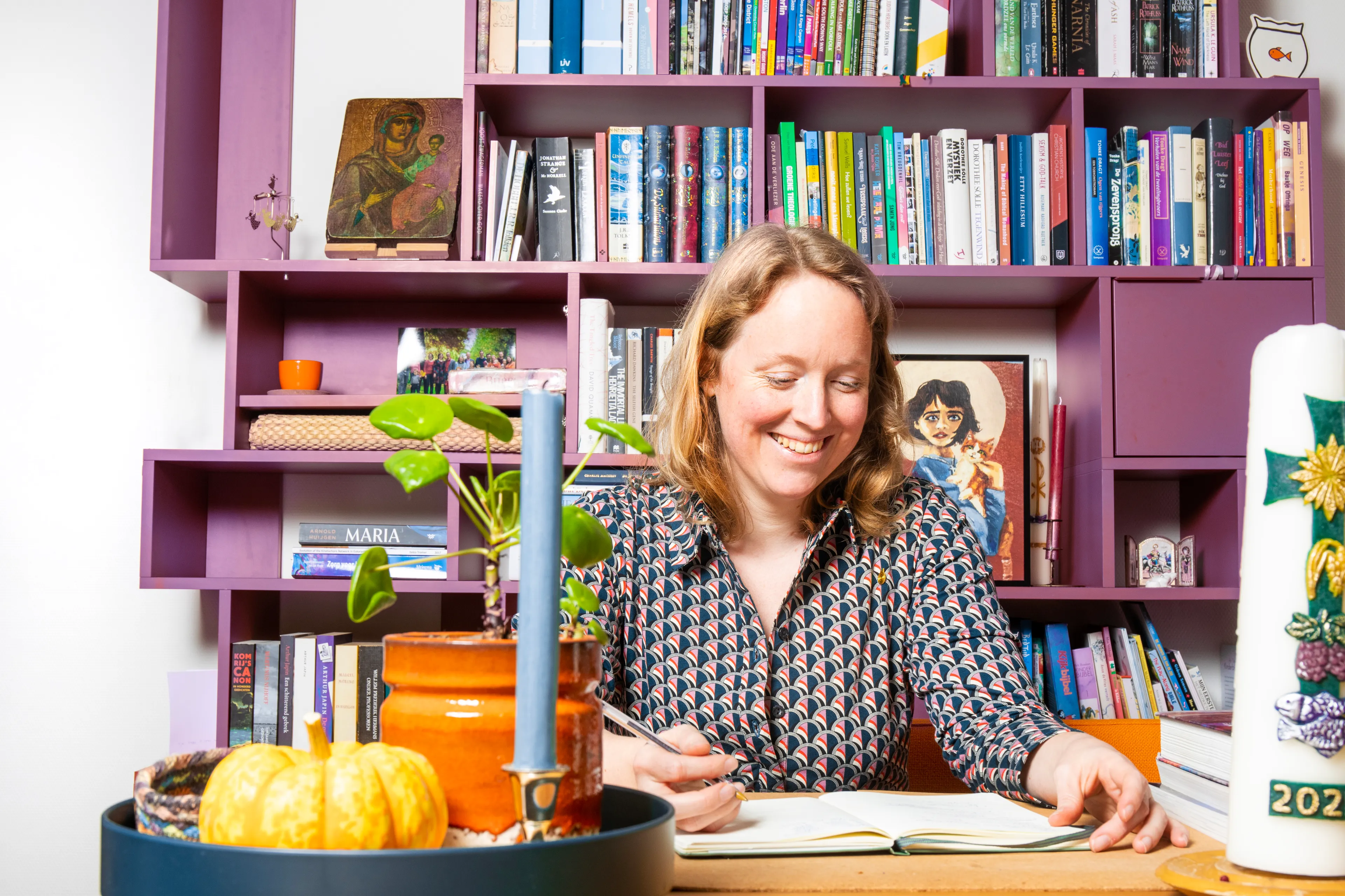 "We kennen onze buren en als ik naar buiten kijk, zie ik mensen voorbijkomen wier naam en verhaal ik ken. Dat verbindt me veel meer met de plek waar ik woon. En dat is fijn, want mijn werk speelt zich grotendeels in en rondom mijn huis af.” Ze onderbreekt haar woorden even om haar hand op te steken. “Zelfs de postbode ken ik!” Dan nuanceert ze: “Als predikant blijf je toch altijd een tijdelijke inwoner. Dat vind ik soms wel jammer; je bindt je nooit voor altijd aan één plaats.” Met een lachje: “Ik zou hier natuurlijk tot mijn pensioen dominee kunnen blijven, maar het is maar de vraag of mijn gemeente daar blij van wordt.”