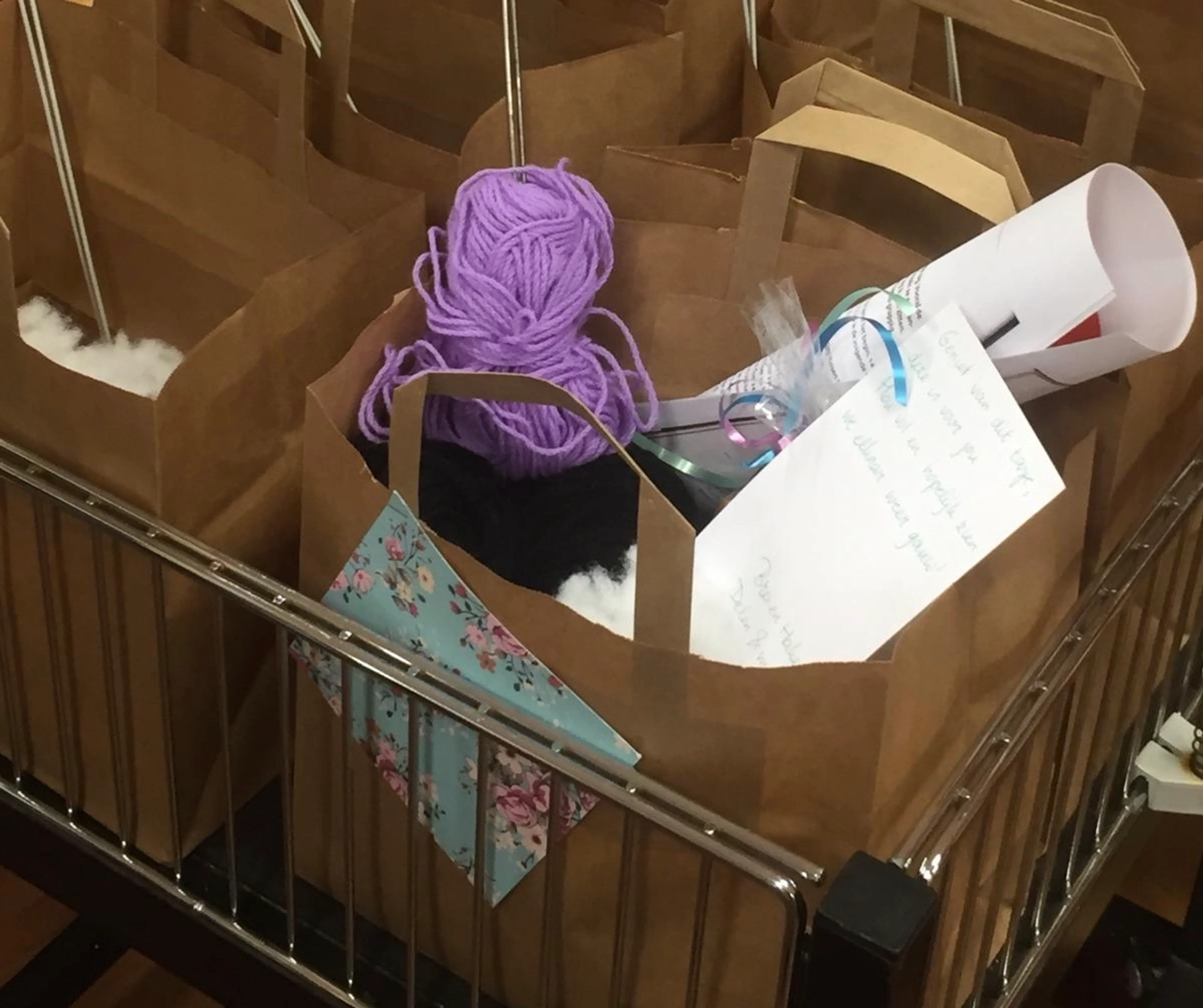 Inmiddels zitten ze in een ruimer gebouw, maar moesten helaas onlangs hun deuren sluiten in verband met de huidige coronamaatregelen. Tóch heeft Roelienke een manier gevonden om de vaste bezoekers te bereiken. ‘Een tasje met bemoedigingen. Veel mensen komen hier om te breien of te haken. We doen er haakpatronen in en wat materialen & een leuke kaart. Duurzaamheid is hier een belangrijk thema. Dus ik probeer alles te maken van gebruikte materialen. Tijdens de eerste lockdown hebben we bijvoorbeeld zelfgemaakte kaartjes verstuurd. De reacties die daarop kwamen waren overweldigend. En ook de tasjes die we nu gaan uitdelen zijn leuk om te krijgen maar ook symbolisch. We willen mensen vooral laten merken dat ze nog in beeld zijn. Juist in deze periode, nu mensen bang zijn en alleen thuis zitten. De komende weken zijn we nog wel even bezig met inpakken en uitdelen, maar ik zie er naar uit hoe mensen gaan reageren!’