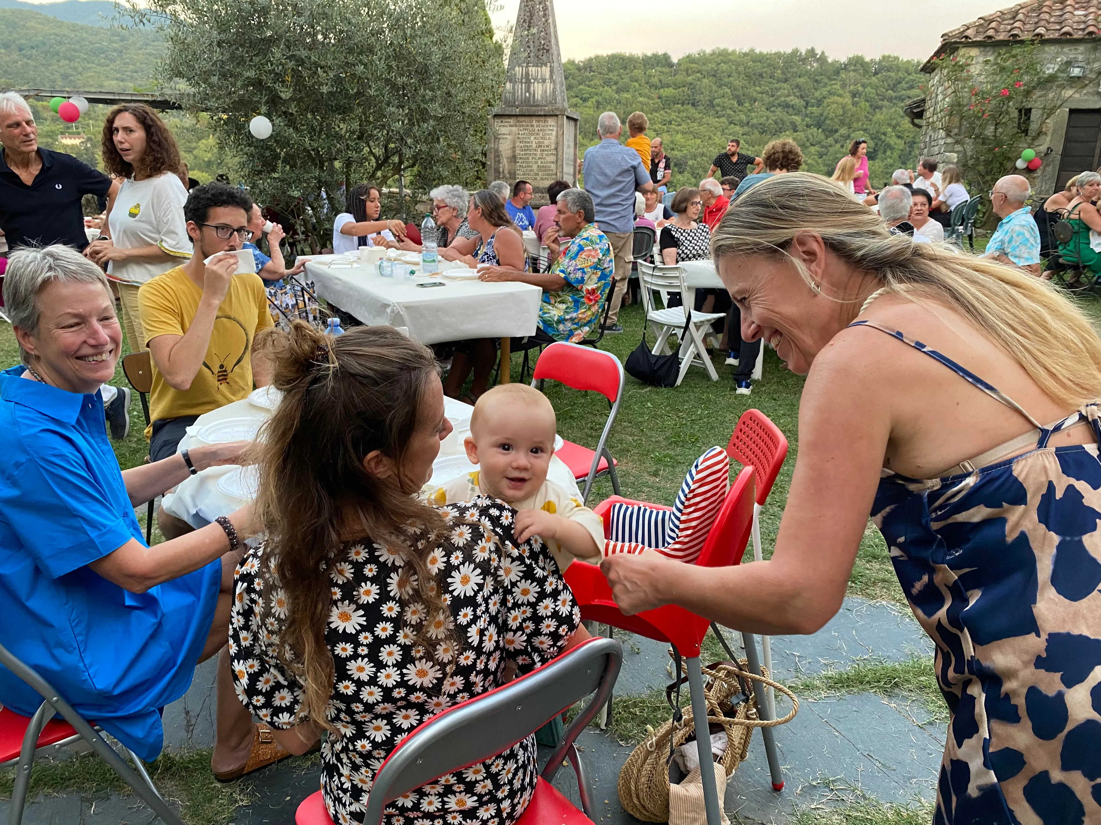 Pizza’s, focaccia’s, torta d’erbri – een soort hartige taart uit deze regio – en natuurlijk volop wijn gaan de tafels rond. Dit is het Italië waar we van droomden. Een huis, een regio kies je met je hart. Maar hoe je wordt ontvangen door je directe omgeving? Dat weet je niet van tevoren. Dit gaat onze verwachting te boven.
