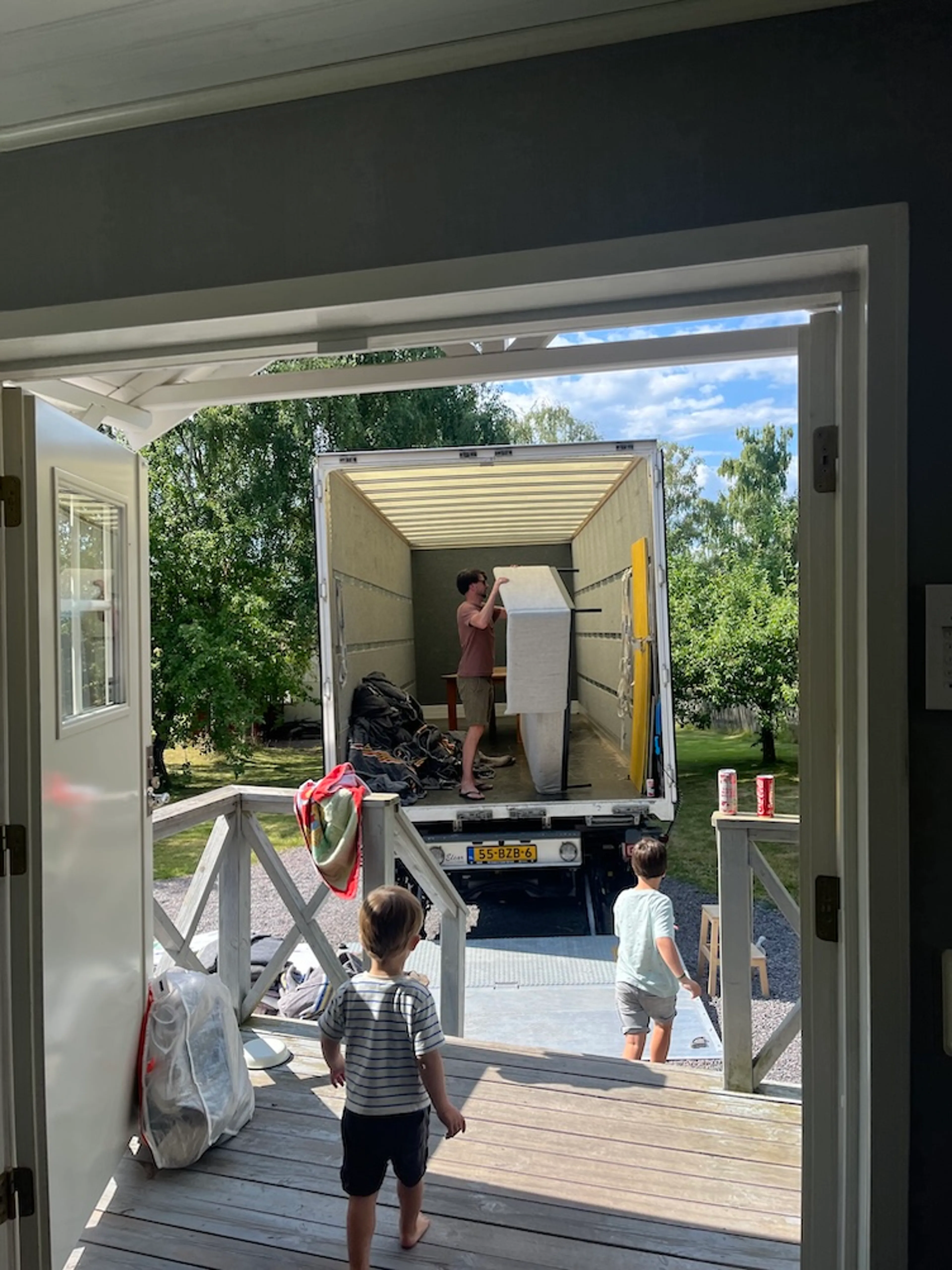 Het was enorm rommelig en Sytze had niet door dat ik inmiddels al de sleutels had ontvangen (ze geven ze aan, want op de tafel leggen brengt volgens de Zweden ongeluk). Maar de bank was akkoord, de handtekeningen gezet, de sleutels in ons bezit, en dus bedankten we iedereen en gingen we snel met de kinderen naar buiten. Op naar onze nieuwe plek!