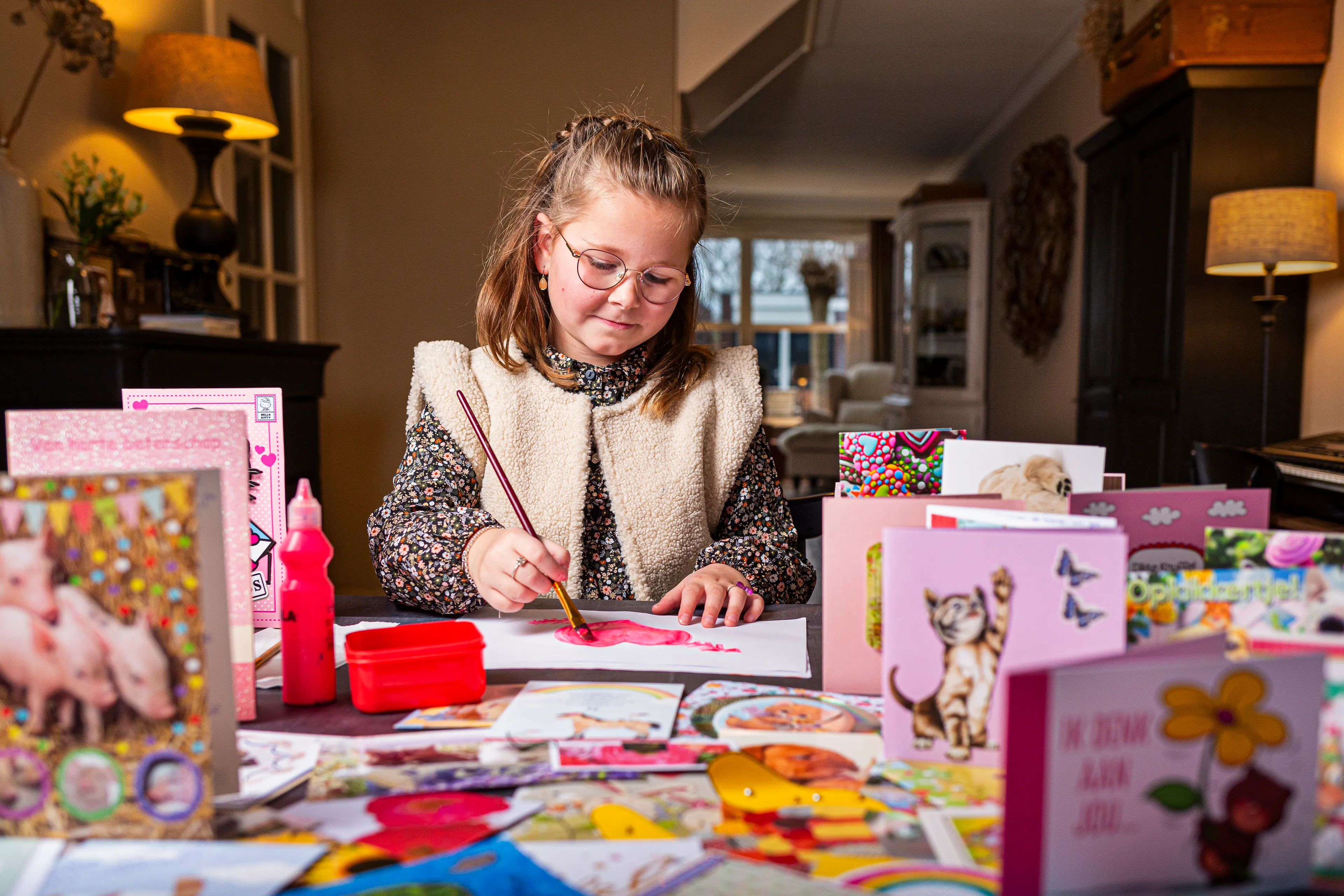 In de gezellige woonkamer, tussen haar ouders op de bank, zit een levendige Flore. Even wint de verlegenheid het, maar al snel zit ze op haar praatstoel. Ze vertelt over de zangles die ze volgt, haar liefde voor verven en schilderen, en ze legt keurig uit waarom lenzenvloeistof en scheerschuim essentieel zijn voor het zelf maken van ‘kneedslijm’. En o ja: dat ze knakworsten echt héél erg lekker vindt.