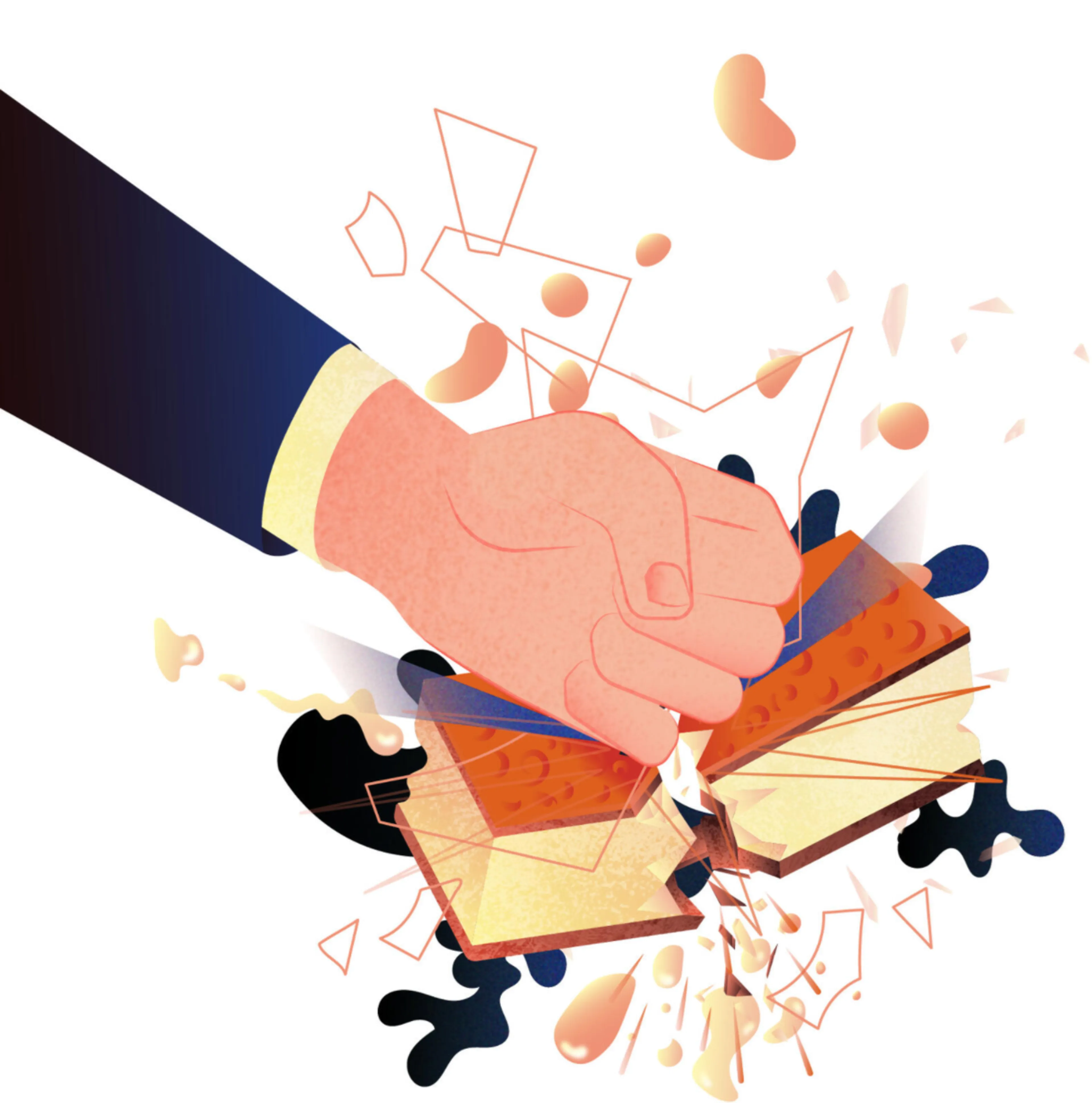 Dan kijk ik naast me. Prediker tilt zijn hand op en slaat met een harde klap op zijn tompoes. De bakkerscrème spat in het rond. Klodders landen op de stoelen, de tv en op de houten visgraatvloer. De bladerdeegbodem en -deksel van de tompoes zijn gescheurd, de helft van het geglazuurde dekseltje ligt op de schoot van Prediker. Die tilt ondertussen rustig zijn hand naar zijn mond en likt het oranje glazuur eraf. Als hij zijn hand ongeveer schoon heeft, kijkt hij me opnieuw rustig aan: “Weerspiegelt dat je gevoel een beetje?”