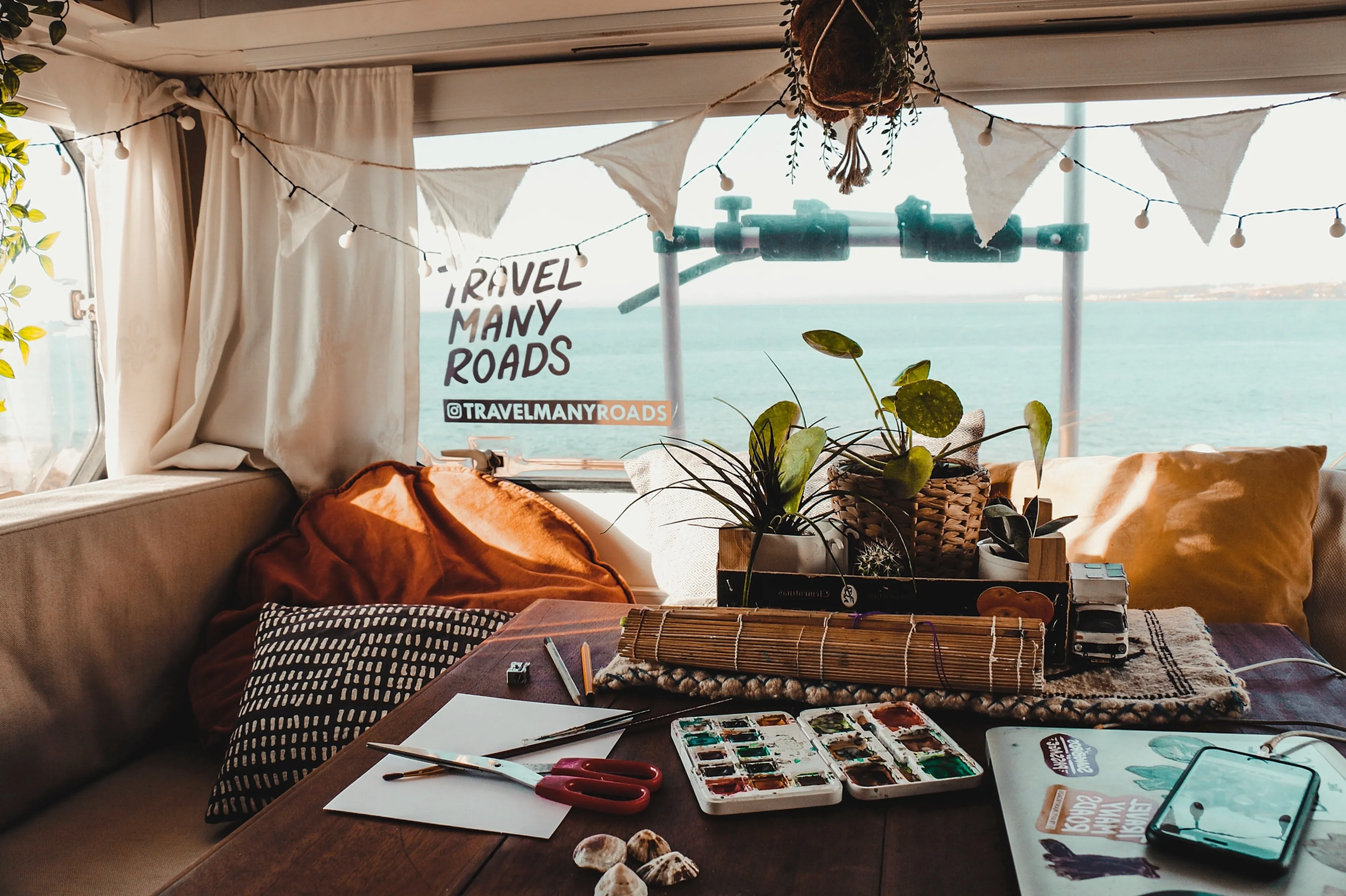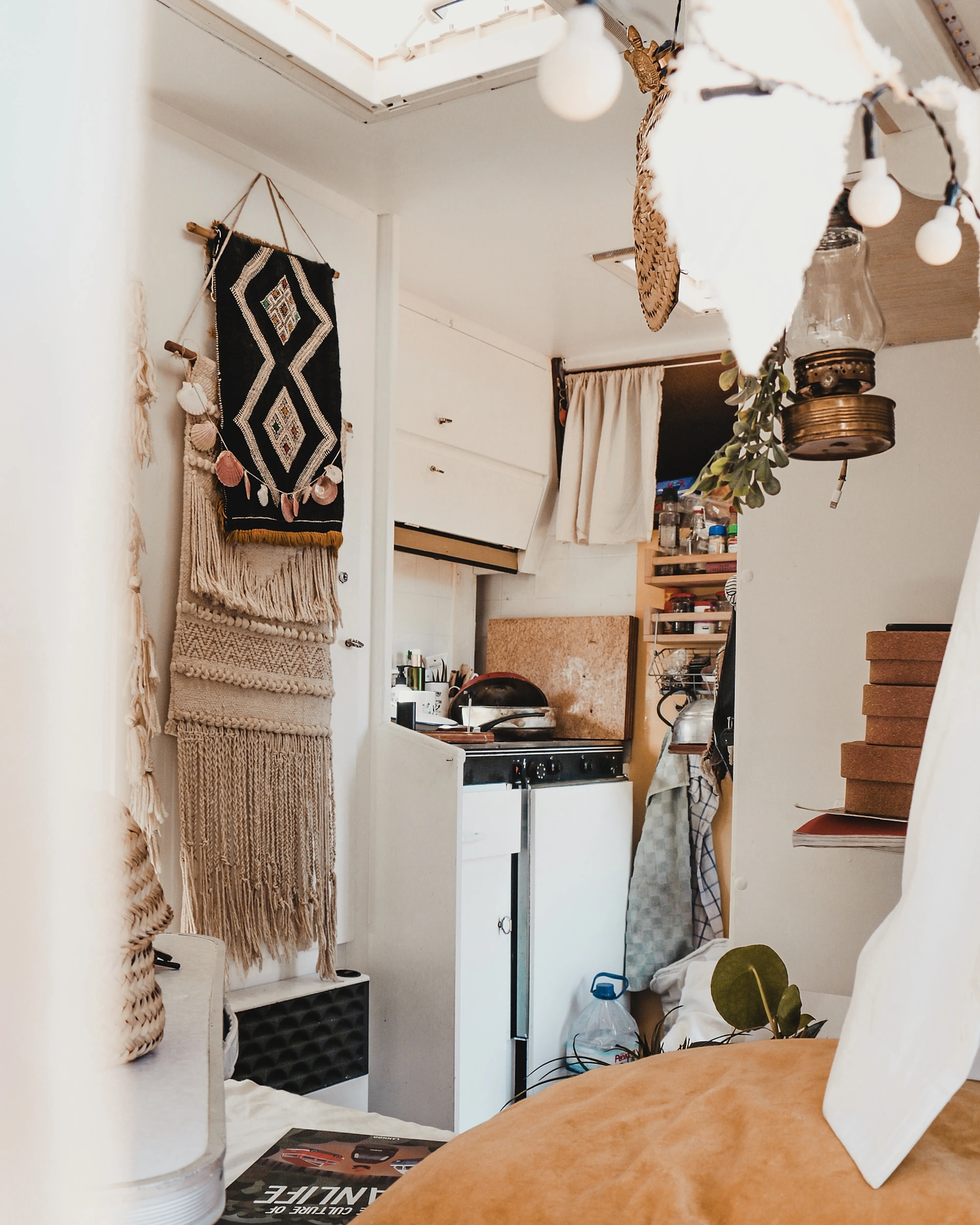 “Ik heb nooit het idee: wat woon ik klein. Natuurlijk heb ik veel minder spullen dan iemand die in een gewoon huis woont, maar ik heb oprecht meer dan genoeg. Ik kan niets opnoemen wat ik mis. Hoe meer spullen je hebt, hoe meer zorgen. We leven veel buiten, maar op een warme dag vind ik het ook heerlijk om in de camper te zitten. Daar voel ik me echt thuis en kom ik tot rust. Of we nou op een parkeerplek naast de Lidl of aan een waanzinnig mooie kust staan. Stap ik de camper binnen, dan kom ik thuis. Als ik naar vriendinnen kijk, die huizen hebben gekocht en kindjes hebben, ben ik heel trots. Toch zou ik op dit moment niet willen ruilen, omdat ik het gevoel heb dat ik in mijn bestemming wandel.”