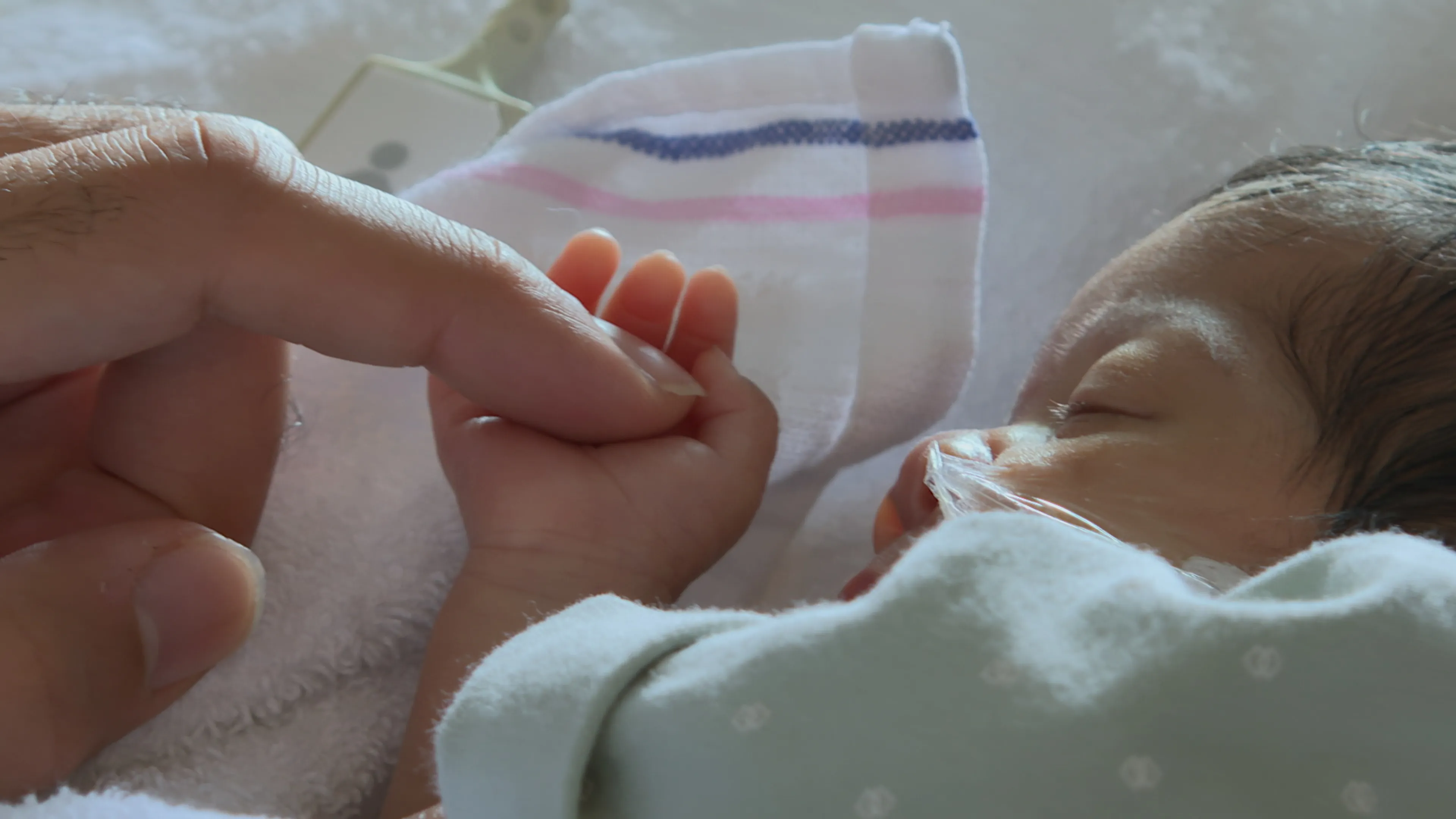 Handen aan de couveuse