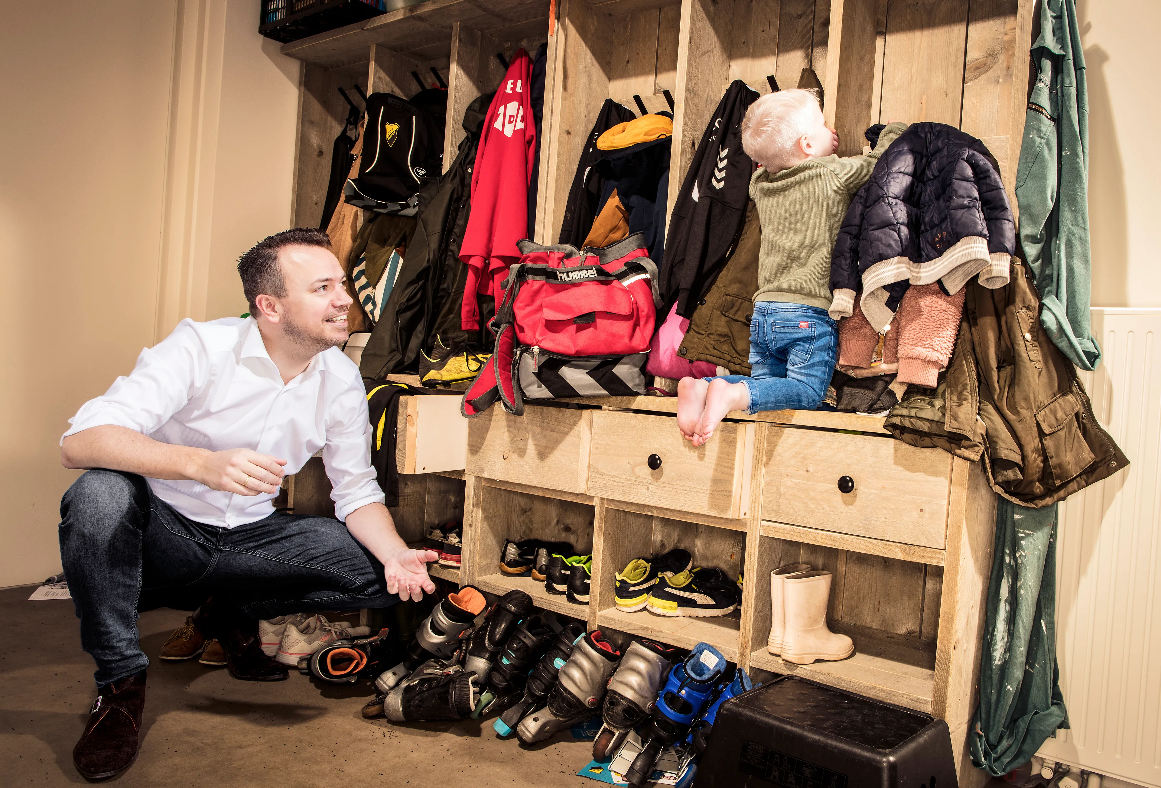 Ondertussen loopt zoontje Naut, net 2 jaar, nieuwsgierig rond de keukentafel. Zijn moeder pakt hem op en doet hem zijn jas aan. Ze gaan naar de bibliotheek. Of Kampen een mooie bieb heeft? “Zeker weten”, antwoordt Sander direct. Misschien kan hij niet anders zeggen, als burgemeester? Lachend: “Ik ben diplomatiek ja, mijn vrouw minder.” En inderdaad antwoordt Lianne nuchter: “Het is een prachtig pand, maar met al die trappen niet ideaal als je kleine kinderen meeneemt. Ik heb de boeken dan ook alvast gereserveerd.”