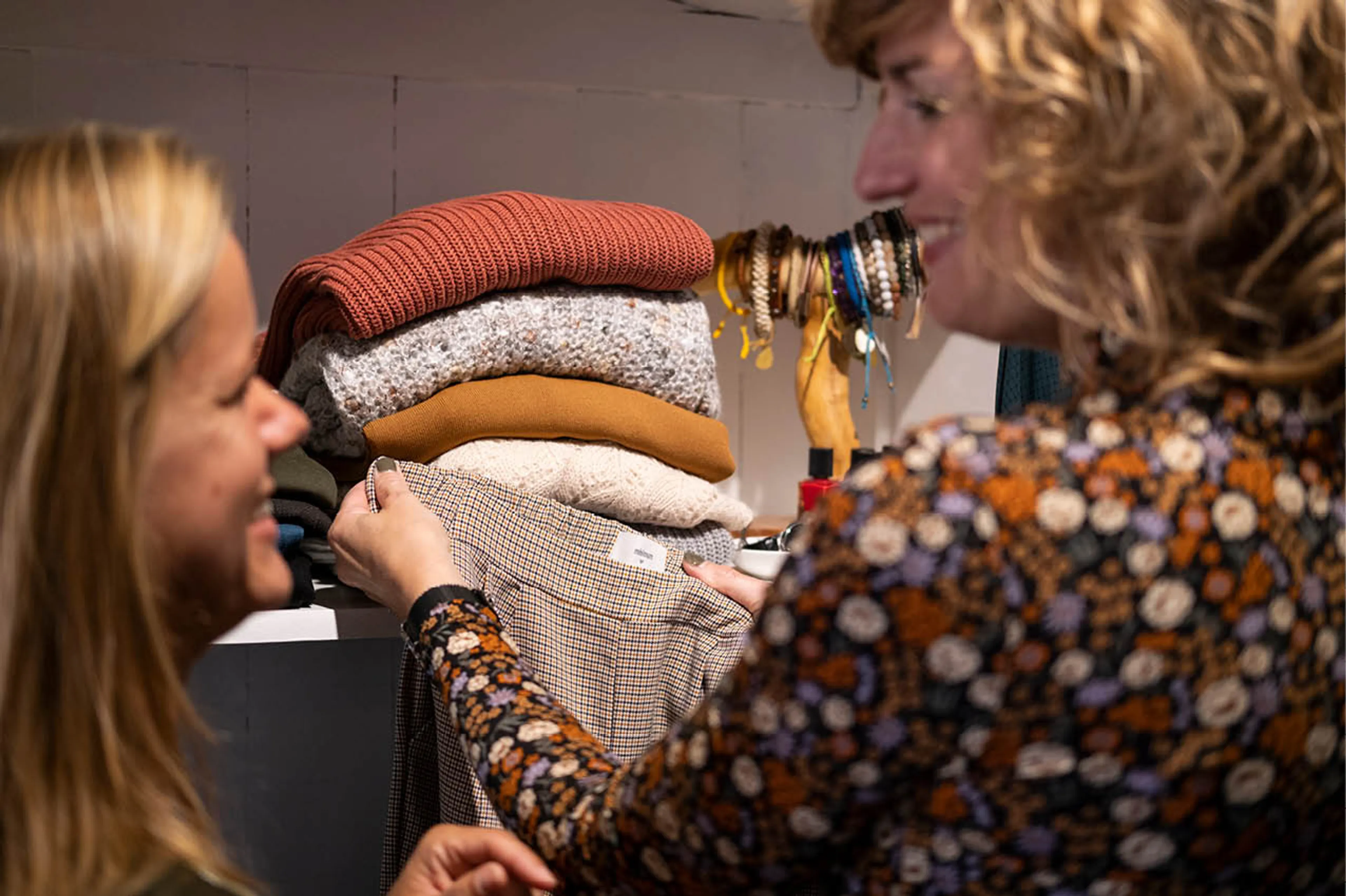 Wat als je niet weet wat je stijl is? Maria: “Het komt nooit voor dat je eigen stijl niet al in je kledingkast hangt. Juist door de grote hoeveelheid kleding zie je de parels niet meer die wél bij je passen. Dus: haal er items uit waarvan de pasvorm niet mooi is, of waar je niet gelukkig van wordt als je het aanhebt. Dan komt je eigen stijl naar voren. Vaak maak ik nog wel een shoppinglist voor een klant. Maar ik geloof in minder kledingstukken, meer sets. Als er alleen nog die kledingstukken hebt hangen waar je blij van wordt, kun je die bijna altijd combineren.”