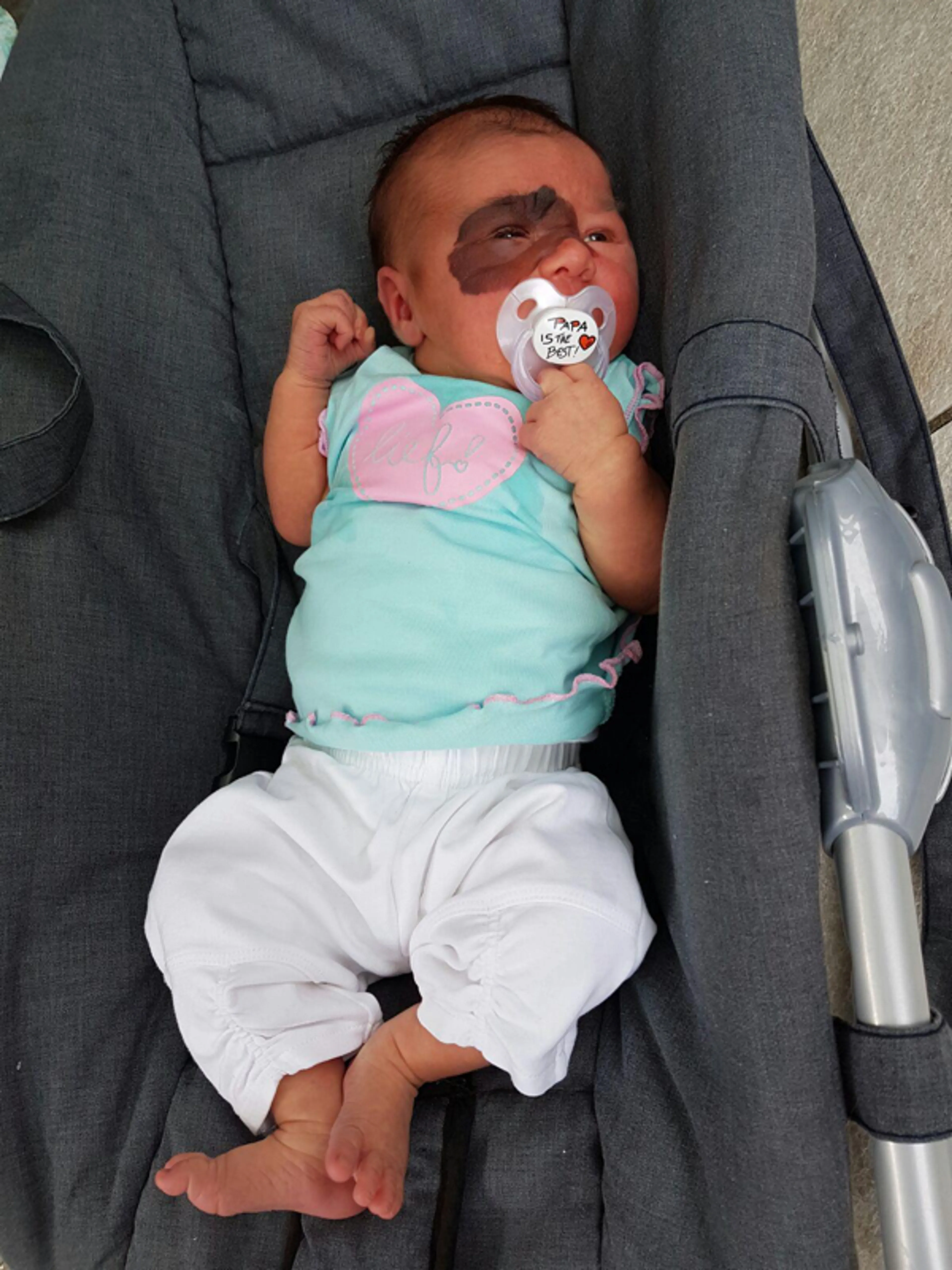 “Toen ze vijf weken oud was, is ze aan haar moedervlek geopereerd en zijn we de medische molen ingegaan. Ze gaven het advies: ‘Als je er iets aan wil doen, moet dat voordat ze acht weken oud is, omdat het pigment zich steeds meer gaat ontwikkelen.’ Maar Naomi was sterk, dus ondanks dat het spannend was omdat ze zo jong was, besloten we het te doen. Ze haalden best wat pigment weg en het was daarna een stuk lichter. Ik ben er gewoon zo aan gewend dat ik het niet meer zie.”