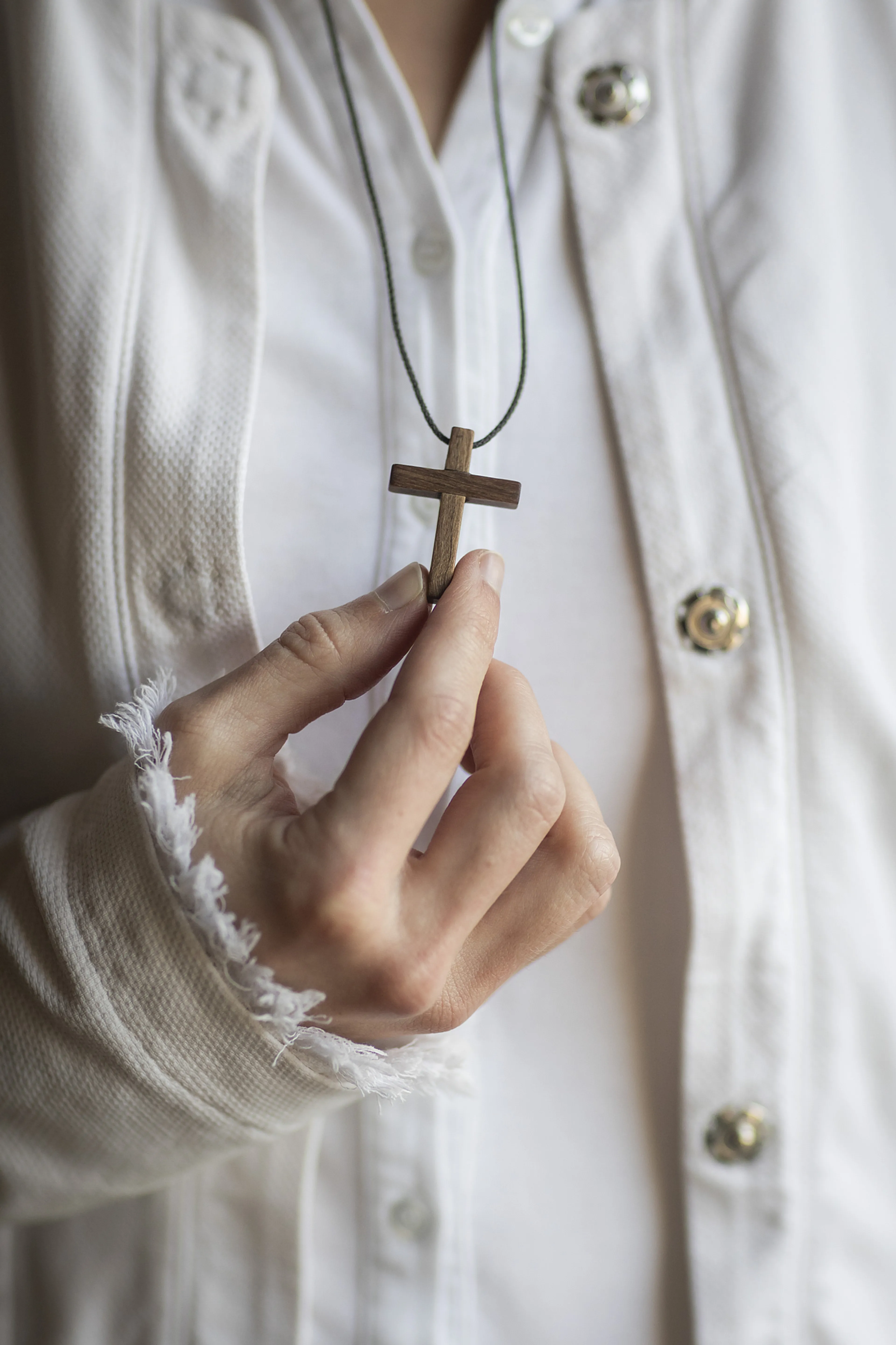 Tijdens de tweede stap, de vormingstijd, kreeg ik een houten kruis. Een teken van toewijding aan God, dat toegewijden in onze gemeenschap altijd dragen. Daarnaast dragen wij altijd een blauwe, lange rok met een witte blouse of een wit jasje. Met name het houten kruis valt op en tijdens congressen of borrels krijg ik er haast altijd vragen over.