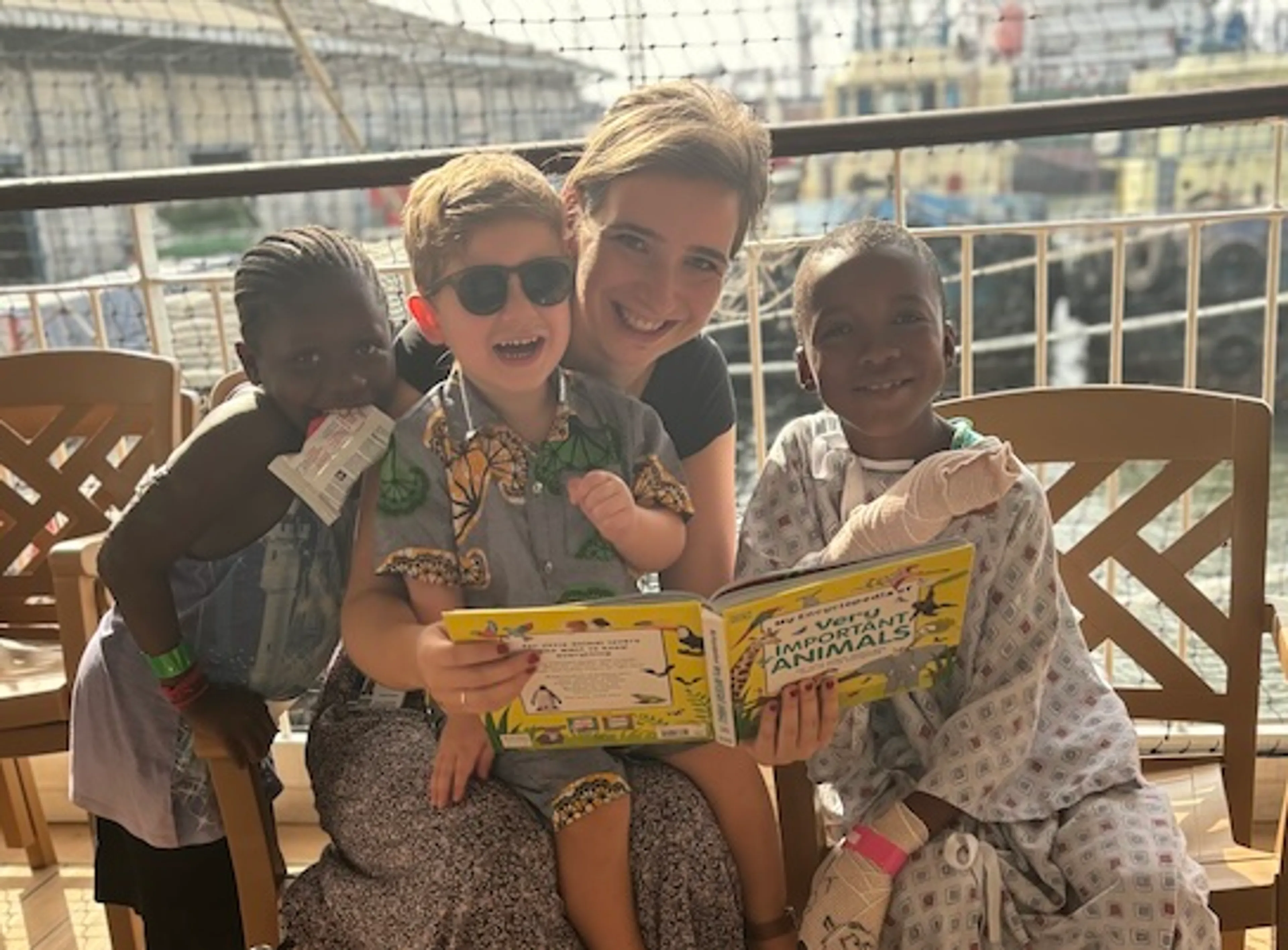 “Het leven hier is goed”, vertelt Josianne. “Het is leuk om met allemaal mensen samen te zijn die vanuit hun geloof leven en werken”, vult Johan aan. “Op het schip zijn we met wel 40 culturen bij elkaar, allemaal met een andere achtergrond en werkervaring. Het kan wel eens beklemmend zijn, omdat je veel van elkaars beslommeringen meemaakt. Maar we leren veel van elkaar, zowel werk als privé. Ook ons zoontje Micha leert veel van zijn interacties met patiënten, zoals Ibrahim, die geopereerd is aan zijn vergroeiingen. Ze kunnen ontzettend leuk met elkaar spelen.”
