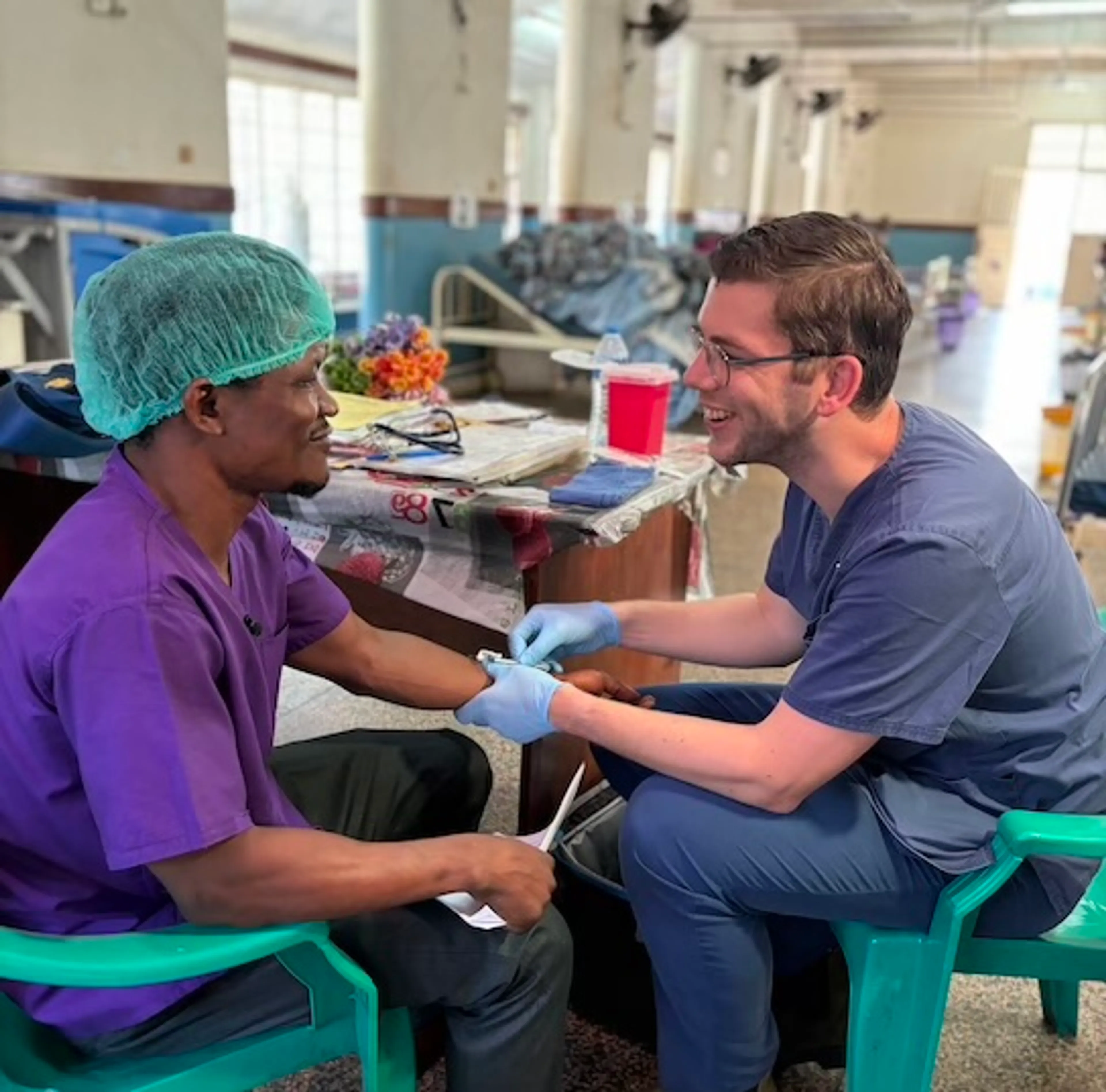 Jaren later wordt hun droom werkelijkheid. Sinds augustus 2024 werken ze op het ziekenhuisschip Global Mercy in Sierra Leone. “Er is hier een ernstig tekort aan goed opgeleide zorgmedewerkers, daarom leiden wij met ons team lokale zorgmedewerkers op en geven we ze de kans om aan boord stage te lopen. Veel mensen hier kunnen niet worden geopereerd vanwege ontbrekende kennis, materiaal en ervaring. Op het schip kunnen we mensen kosteloos opereren, maar hulp op lange termijn is ook nodig. Daarom leiden we de zorgmedewerkers op, zodat ze na ons vertrek betere zorg kunnen bieden”, vertelt Johan.