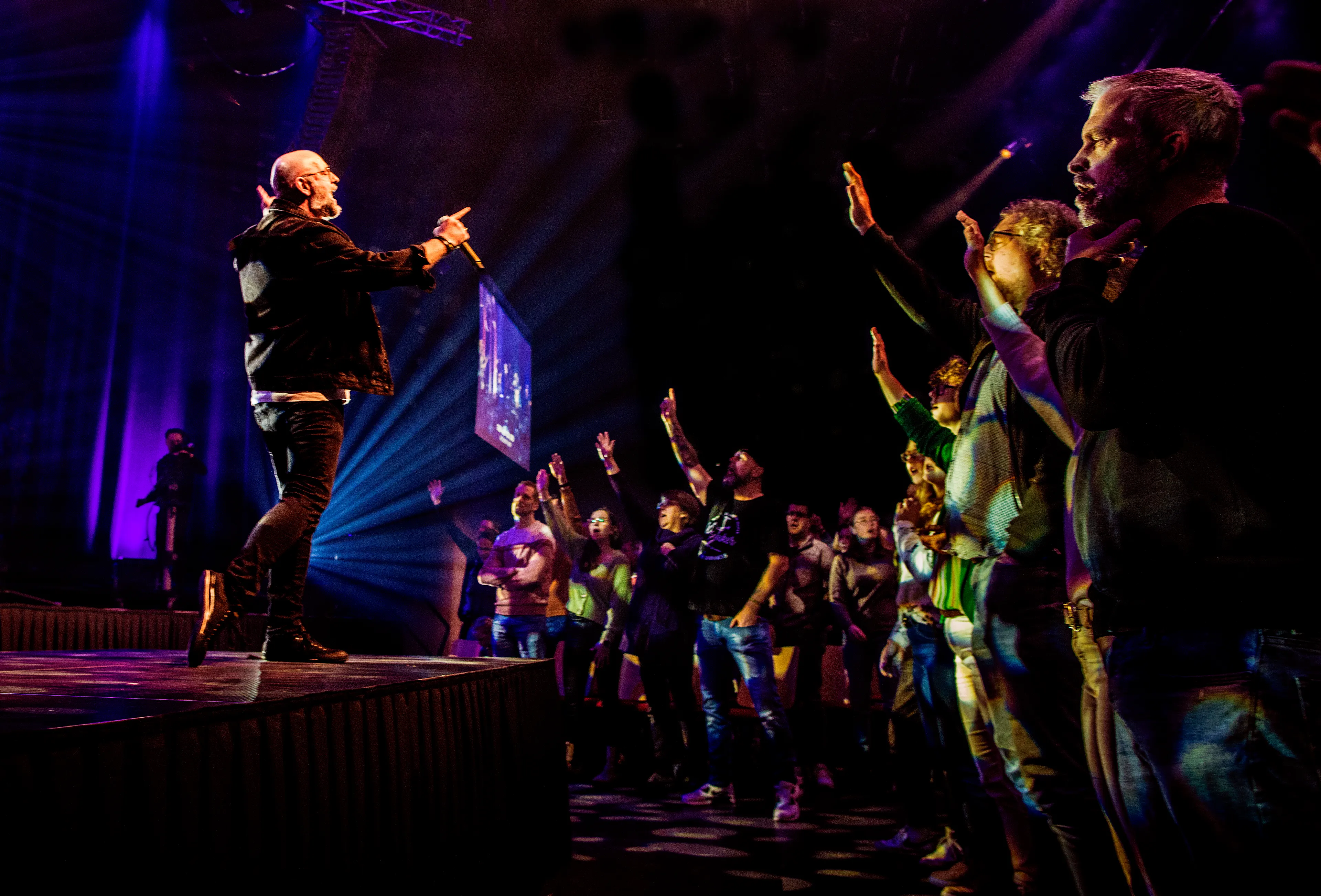 Hij slaat een hand op zijn knie en zegt: “Dat de God van het universum de tijd neemt om een rebellerende, zichzelf zoekende tiener te ontmoeten. Dat die grootheid zo dichtbij wil komen. Die drie minuten – langer duurde het liedje niet – waren zó impactvol, dat heb ik daarna nooit meer meegemaakt.”