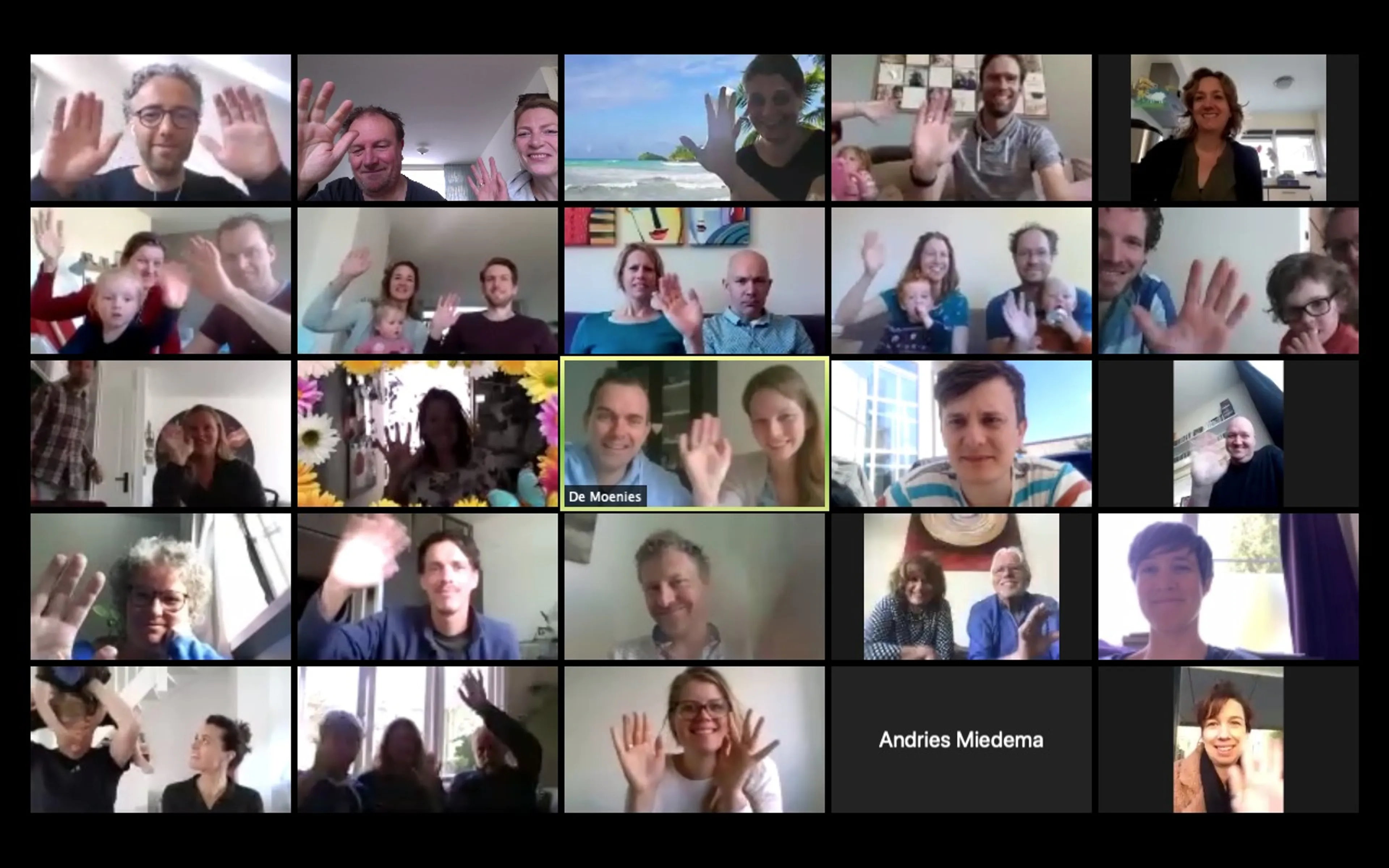 “Nu we niet meer bij elkaar mogen komen, houden we meetings via Zoom. Natuurlijk is dat wennen. We missen de ‘small talk’ tijdens het koffiedrinken op zondagochtend of de gezamenlijke borrel na een gemeente-avond. Tegelijkertijd is het heel leuk en mooi om elkaar via Zoom te zien en gedag te zeggen. Inmiddels hebben we ervaren dat samen zingen via Zoom niet werkt”, lacht ze.
