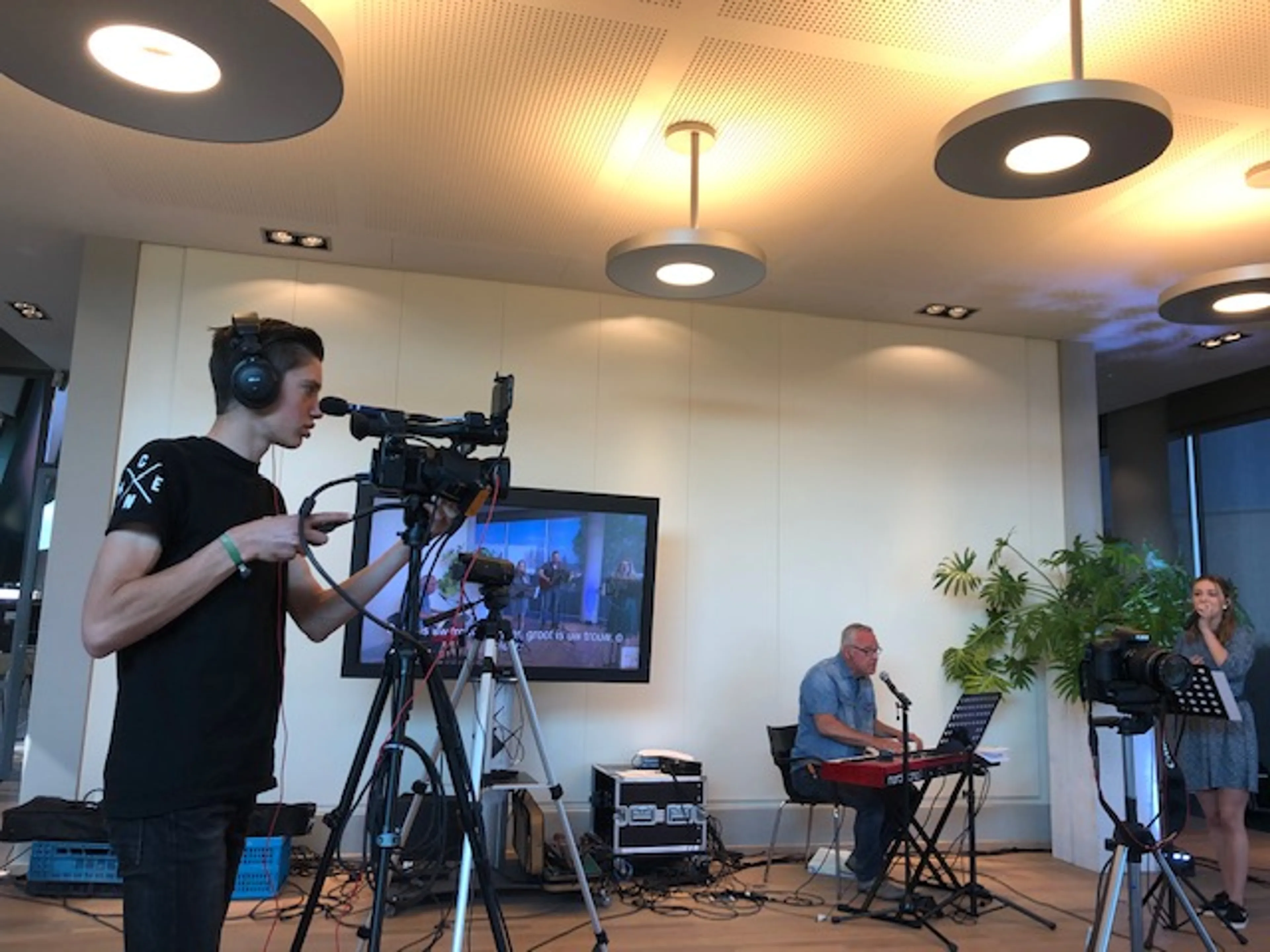 En juist die vernieuwende vorm zorgde ervoor dat De Fontein de afgelopen weken snel kon schakelen. “Normaal gesproken zijn onze diensten live te volgen. Toen bleek dat we niet meer samen mochten komen met meer dan dertig mensen, opperde een gemeentelid om een ruimte in zijn bedrijfspand tijdelijk als studio in te richten. Elke zondag komen we daar met een klein groepje - waaronder de predikant en onze band - samen om een livestream via Facebook en Youtube te verzorgen. Het is een interactieve dienst: zo kunnen mensen via WhatsApp vragen stellen aan de voorganger. Mensen waarderen het enorm. Er kijken zelfs meer mensen dan vòòr de coronacrisis. Het is natuurlijk ook laagdrempelig om op deze manier aan te haken, zeker voor randkerkelijken”, weet hij.