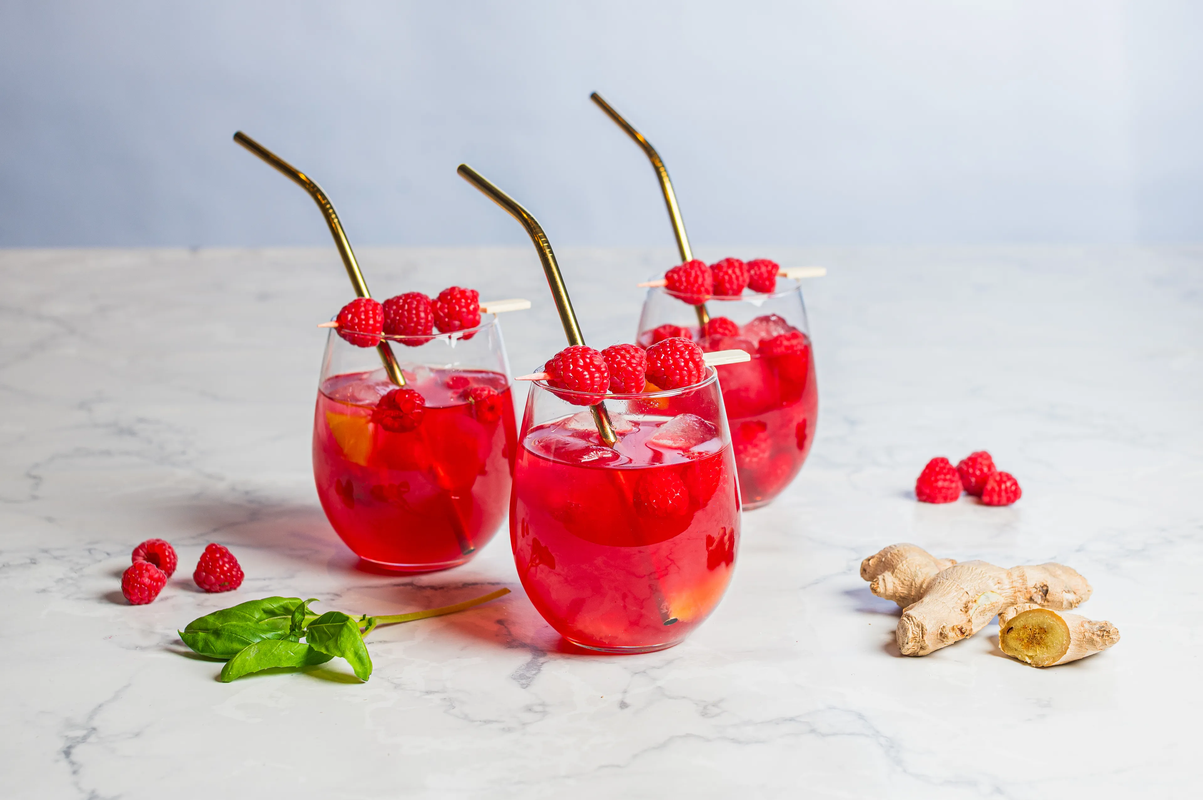 Rode kerstballen in de boom, een rode lippenstift of misschien wel met een rode vlinderdas aan het kerstdiner. Wie aan een echte kerstkleur denkt, denkt al gauw aan rood. Daarom kan deze kerstkleurige mocktail met gember, roodfruit en basilicum natuurlijk niet ontbreken.
