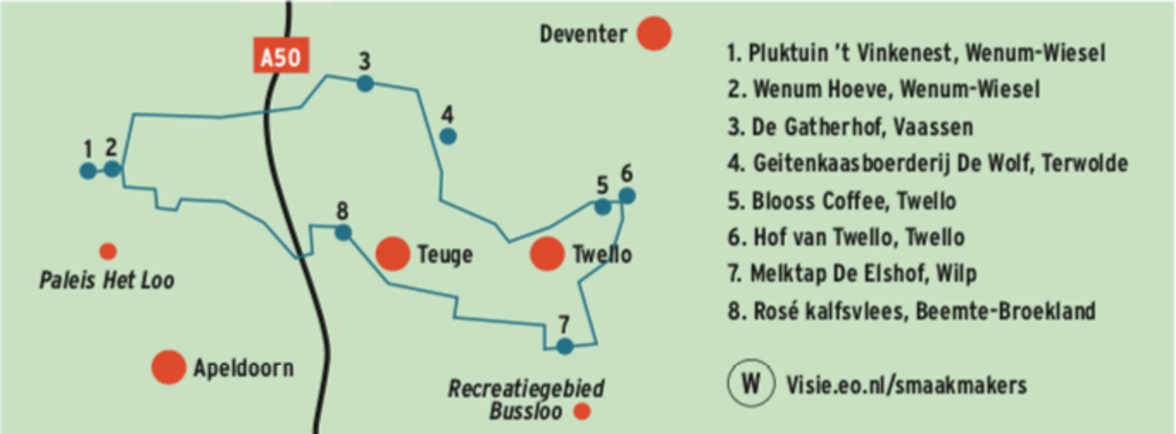 Met ruim dertig kilometer in de benen is het tijd voor de terugreis. We kiezen voor de route via het Weteringse Broek, een natuurgebied tussen Teuge en Apeldoorn. Ter hoogte van Beemte-Broekland strekken we nog even de benen bij de boerderij van Willeam en Ingrid Schoonhoven, die vlees van rosé stierkalveren verkopen. Een unicum in Nederland, omdat de meeste slagers alleen vlees van een koe verkopen.