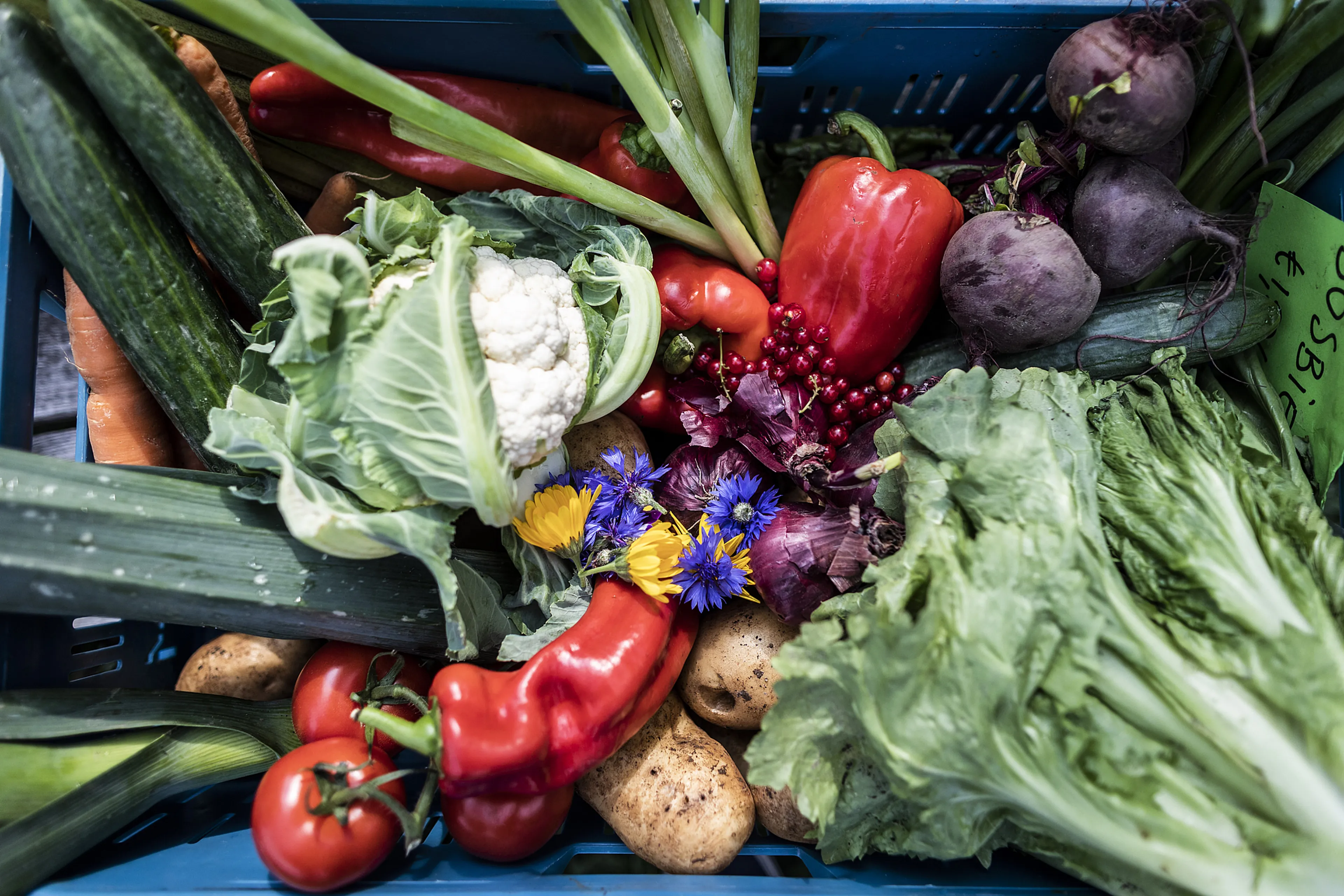 De winkel biedt kratten vol bosbieten, courgettes, aardappels en rode paprika’s. Maar ook een bos versgeplukte bloemen en diverse kazen vullen het assortiment. “Verser en gezonder kan niet,” zegt Miriam, die dagelijks verse producten oogst uit de grote groente- en fruittuin die achteraan het erf ligt. Ernaast ligt een wijngaard en vandaag is de ‘rosé uit de IJsselvallei’ in de aanbieding.