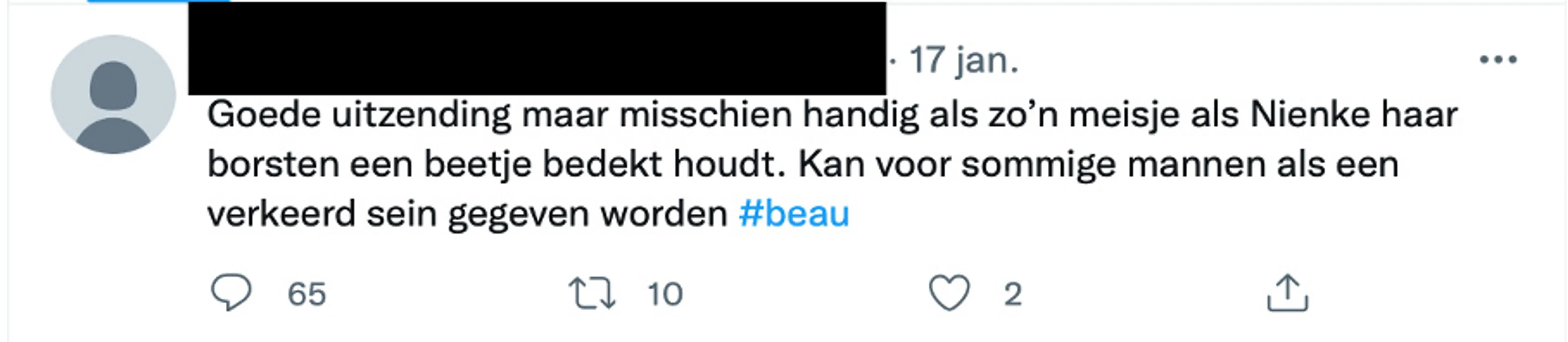 Helaas ben ik niet de enige die de neiging heeft tot victim blaming. Zo krijgt driekwart van de slachtoffers die ermee naar buitenkomt ten minste één beschuldigende opmerking van bijvoorbeeld vrienden. De reacties op Twitter op de oud-deelnemers van The Voice die hun verhaal deden over het seksueel grensoverschrijdend gedrag waarmee ze te maken hadden gehad, bevestigen dit: