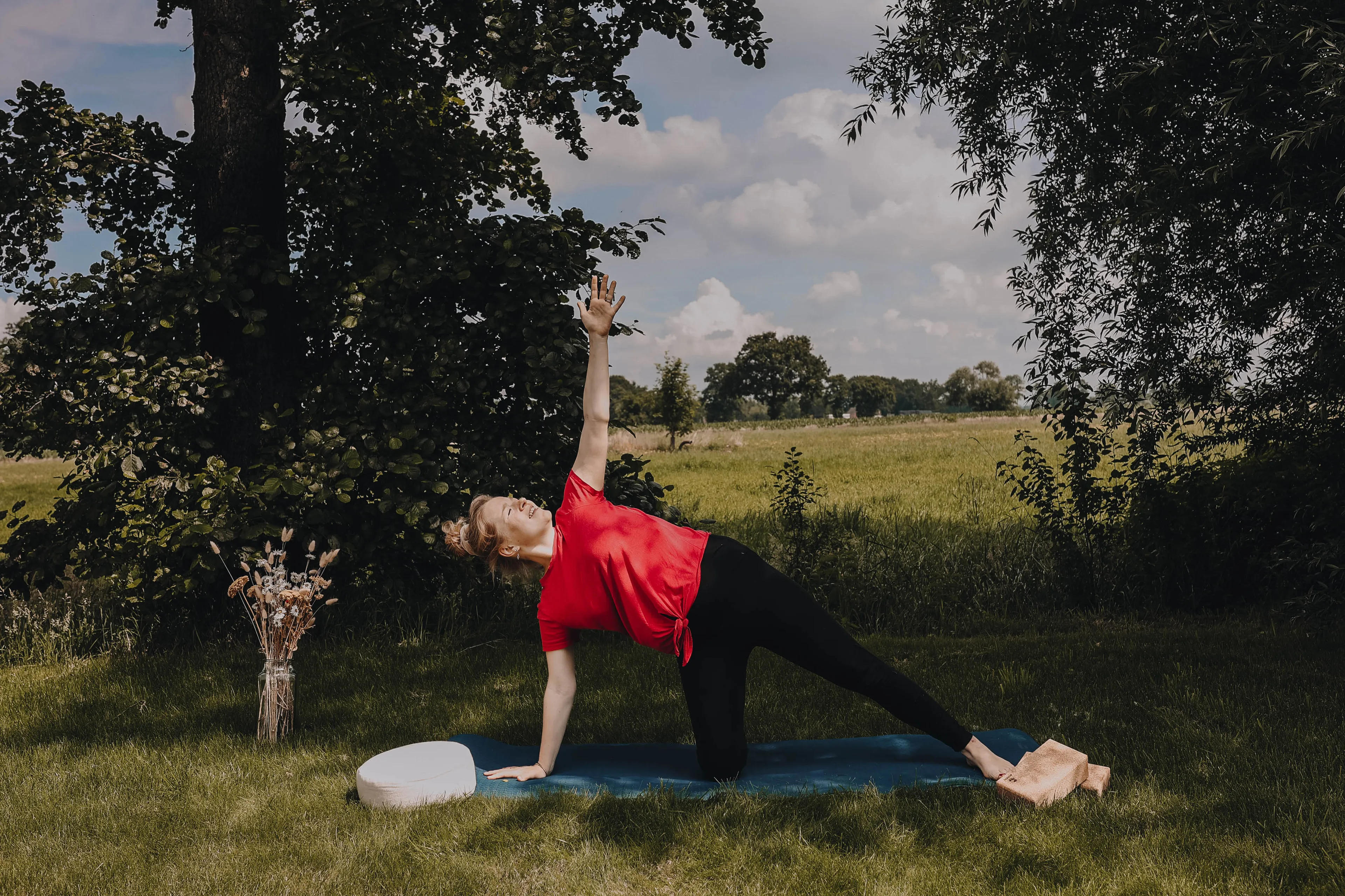 Wat ziet Laurien als meerwaarde van yoga? Een stevige wandeling kan tenslotte ook voor ontspanning zorgen. Lachend: “Jazeker, ik ben dol op wandelen en doe dat ook graag en vaak. Het grote verschil tussen buiten bezig zijn of yoga is de focus. Tijdens wandelen of fietsen ervaar ik de schoonheid en prikkels van buiten; de wind, de zon, de natuur. Yoga helpt me om te focussen op de binnenkant, op wat er in mijn lichaam en gevoel gebeurt. Dit kun je natuurlijk óók buiten doen!“