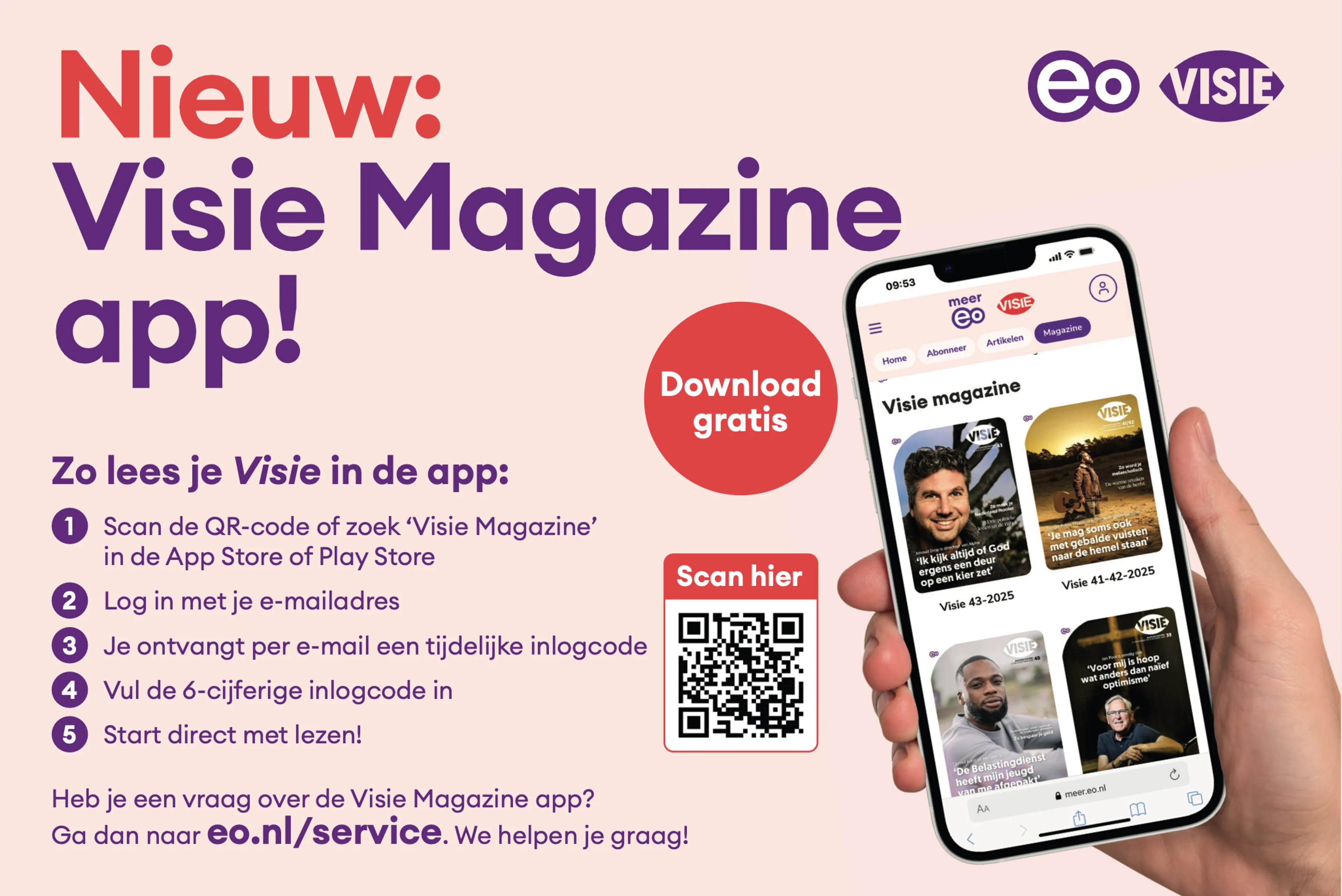 Goed nieuws voor Visie-lezers: het magazine van de EO is nu altijd binnen handbereik. Met de gloednieuwe Visie-app lees je Visie waar en wanneer je maar wilt.