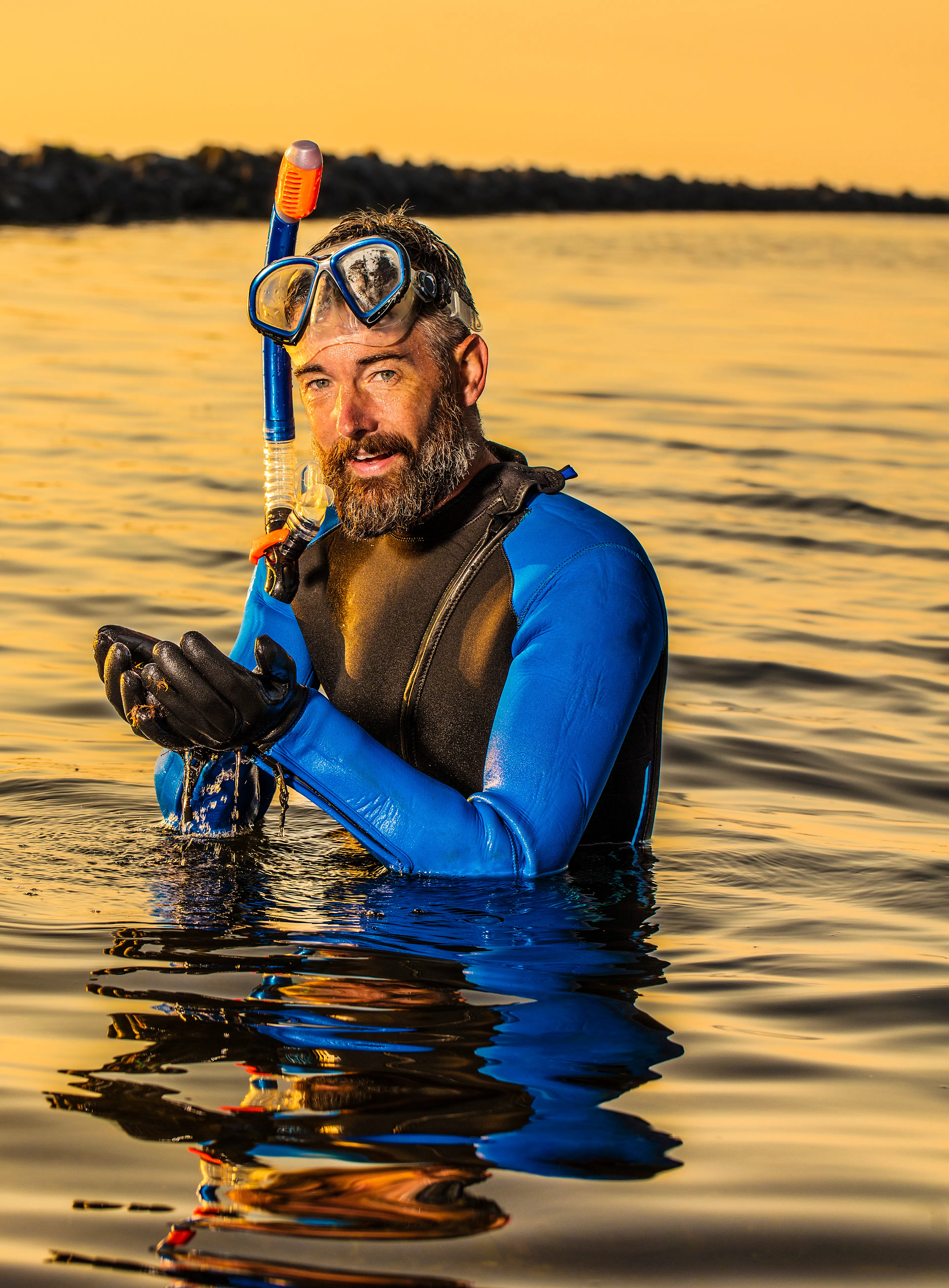 “Zullen wij dan ook maar?” vraagt hij, terwijl hij aanstalten maakt om op te staan. En zo ligt hij even later met een snorkelmasker in het Grevelingenmeer, tussen de kwalletjes, krabben en het golvende zeewier, genietend van de kleurrijke wereld onder water. Af en toe wijst hij op een wonderlijk gekleurde anemoon, een grote krab of een hem nog onbekend, felgekleurd plantje. Want er valt altijd meer te ontdekken onder de waterspiegel.