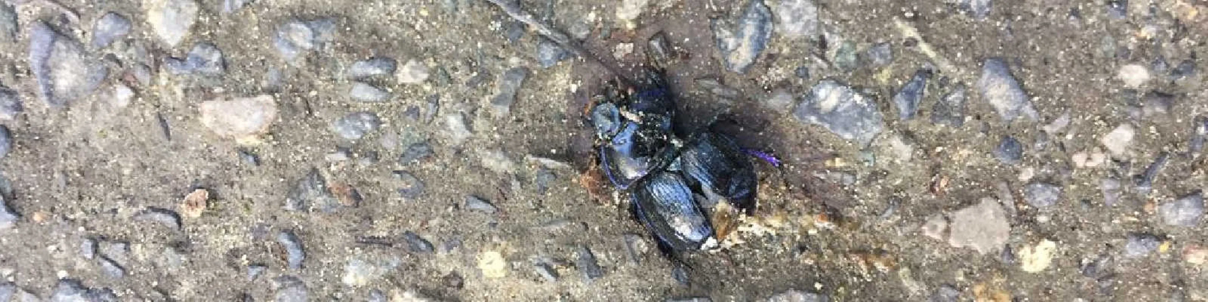 En terwijl ik al nadenkend naar mijn voeten staarde, zag ik opeens allemaal geplette zwarte torren op het wandelpad die me nog niet eerder waren opgevallen. De kleine beestjes waren gesneuveld tijdens hun poging het pad over te steken, vertrapt door de grote mensenschoenen. Zelfs voor ons pelgrims waren ze moeilijk te zien.