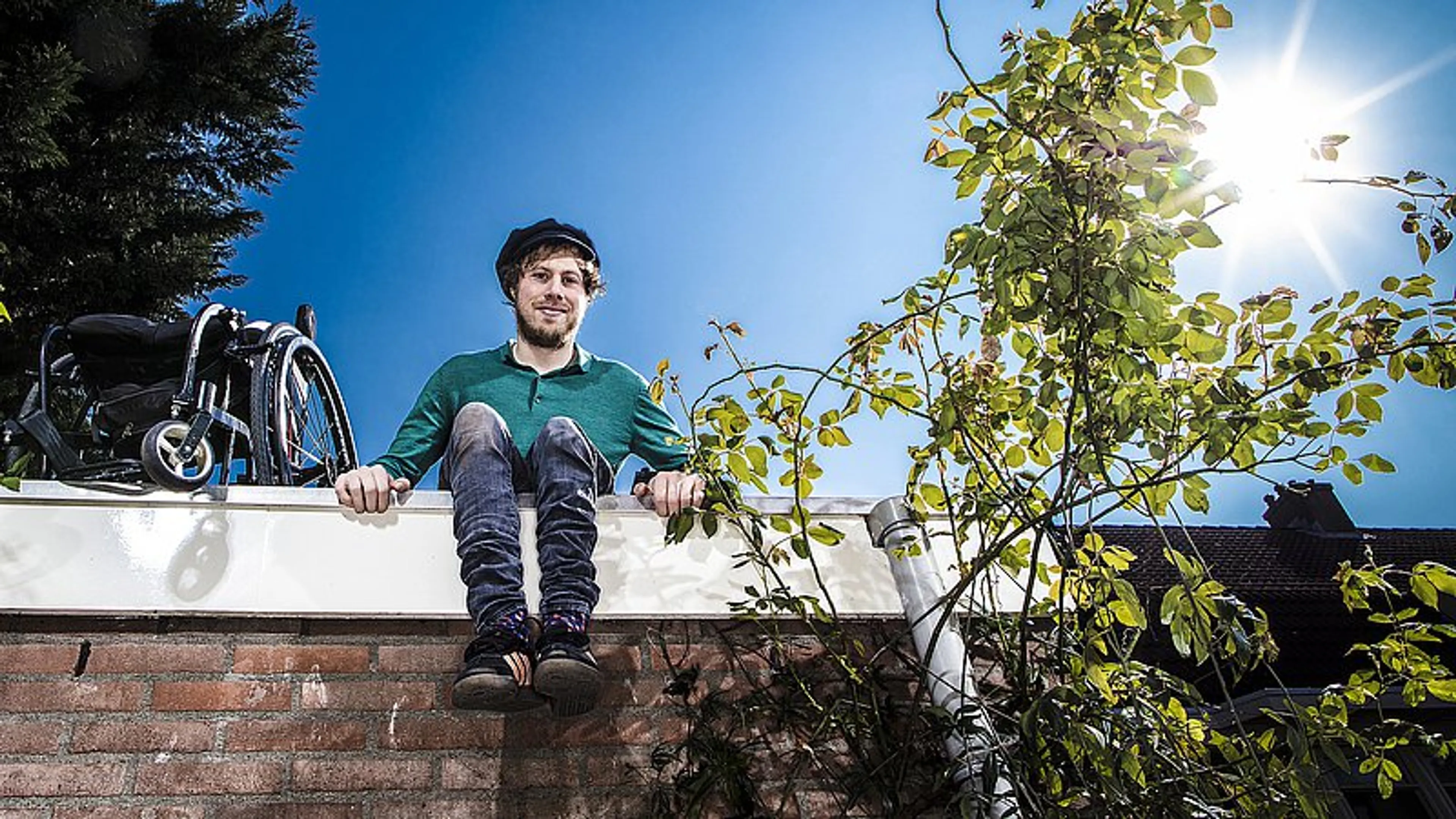 “Op het moment dat ik er echt achter kwam dat ik een handicap heb, was ik 23. Ik denk dat ik het lang voor me uit heb geschoven. Dat heeft me trouwens veel gebracht. Het geeft goede energie om je handicap volledig te negeren en er zogezegd overheen te rauzen. Maar op de kunstacademie, waar je sowieso stevig met jezelf wordt geconfronteerd, moest ik op een gegeven moment een sollicitatiebrief schrijven voor een stage als regieassistent. Ik liet een vriendin die brief lezen. ‘Hé,’ zei ze verrast, ‘er staat helemaal niet in dat je in een rolstoel zit.’ ‘Dat is toch niet nodig?’ reageerde ik verbouwereerd. Maar zij vond het zó raar. Toen dat eenmaal tot me doordrong, ben ik letterlijk flauwgevallen en heeft zij me naar de bank gesleept. De volgende dag werd ik wakker met dit besef: ik heb mijn handicap al die jaren nooit werkelijk geaccepteerd.