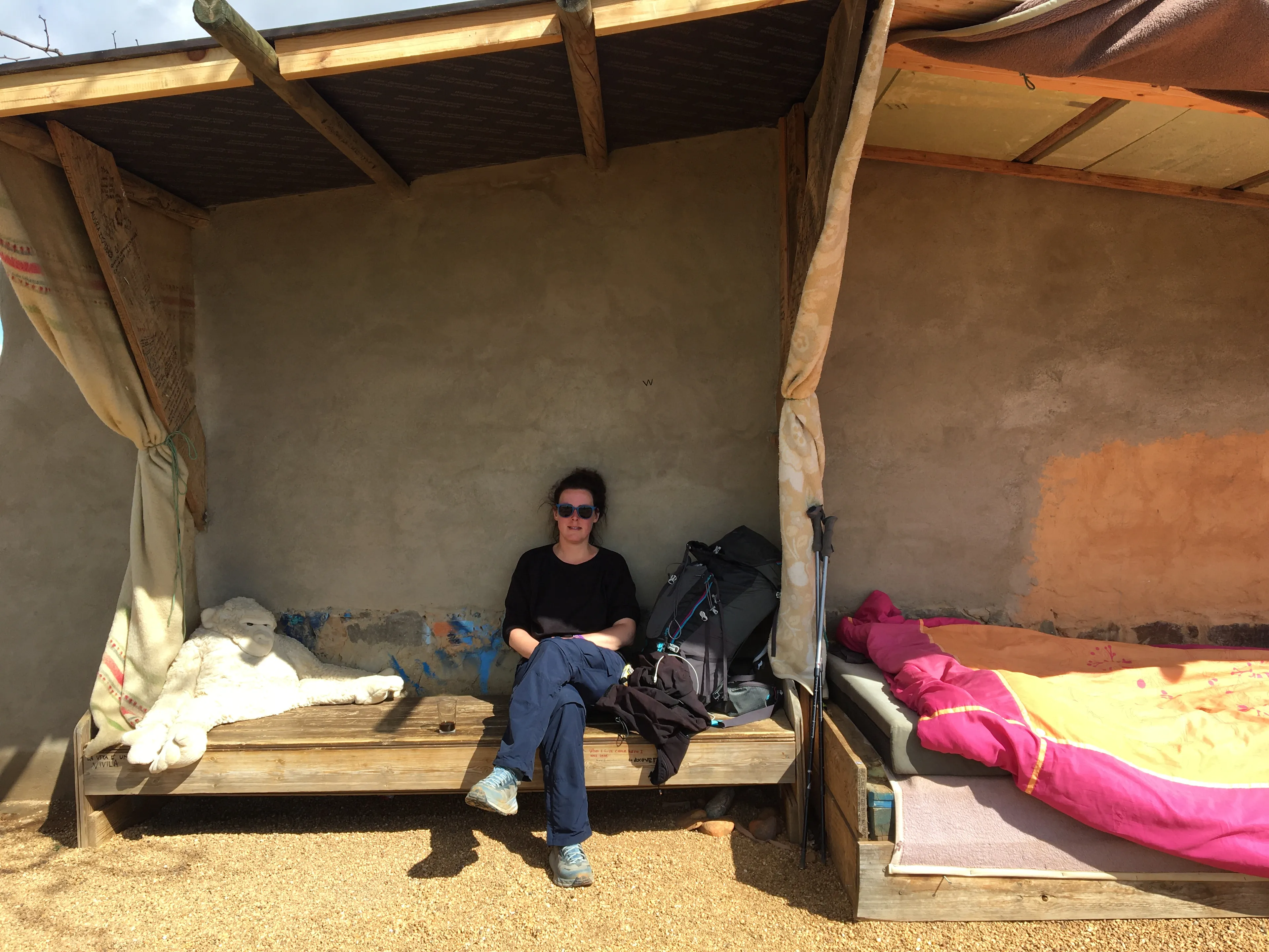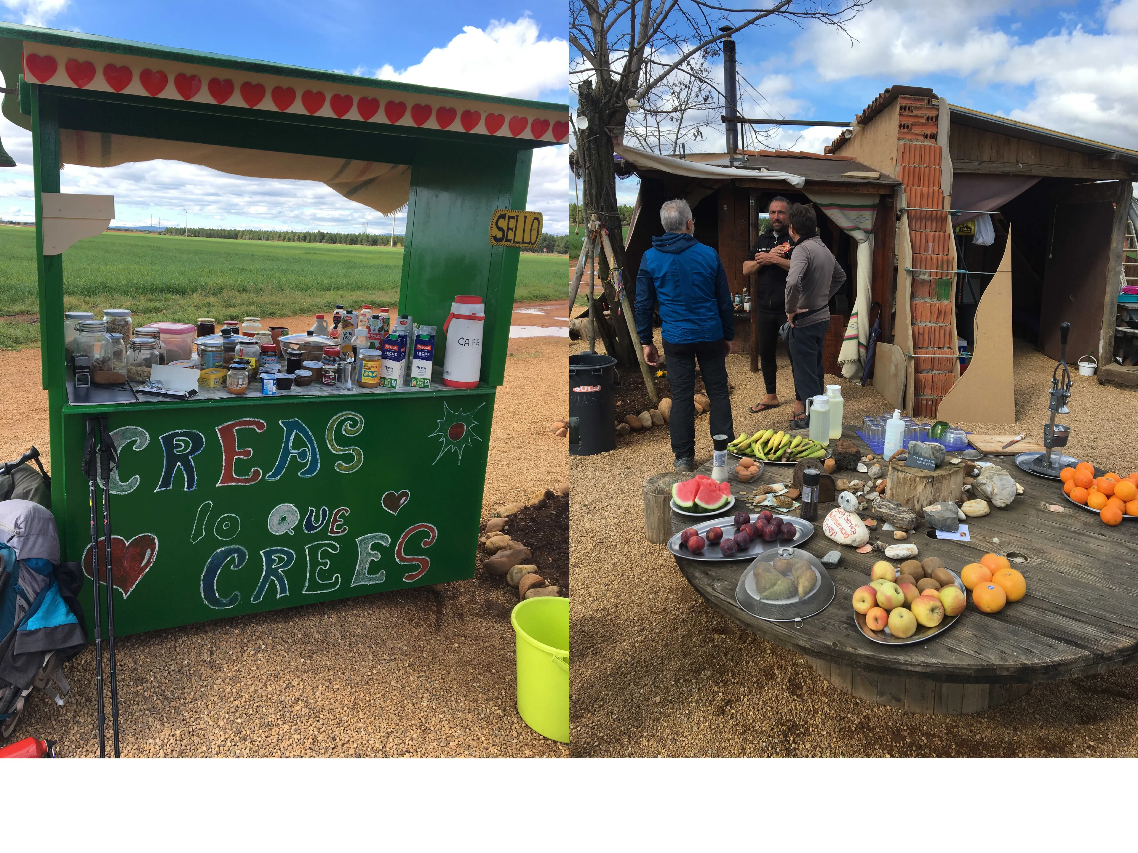 Zoals de zee achter de duinen kan verschijnen verscheen er aan het einde van een bergtop een pop-up barretje. Alles wat je je maar kon wensen was er: een bed, vers fruit, een labyrint, koffie, noten. Er liep een man rond die zachtjes meezong met de muziek. Hij was overduidelijk degene die deze toko runde. ‘Welcome, take whatever you like.’ Deze plek voelde als een oase. Ook al stond er van alles, ik pakte alleen een kopje koffie en een banaan. Toen ik vroeg hem vroeg waar ik kon betalen, zei hij: ‘No no no, this is the Camino’. En toen moest ik huilen. Van de goedheid van deze man en deze plek. En ik dacht: dit is het antwoord. Deze plek is mijn antwoord.