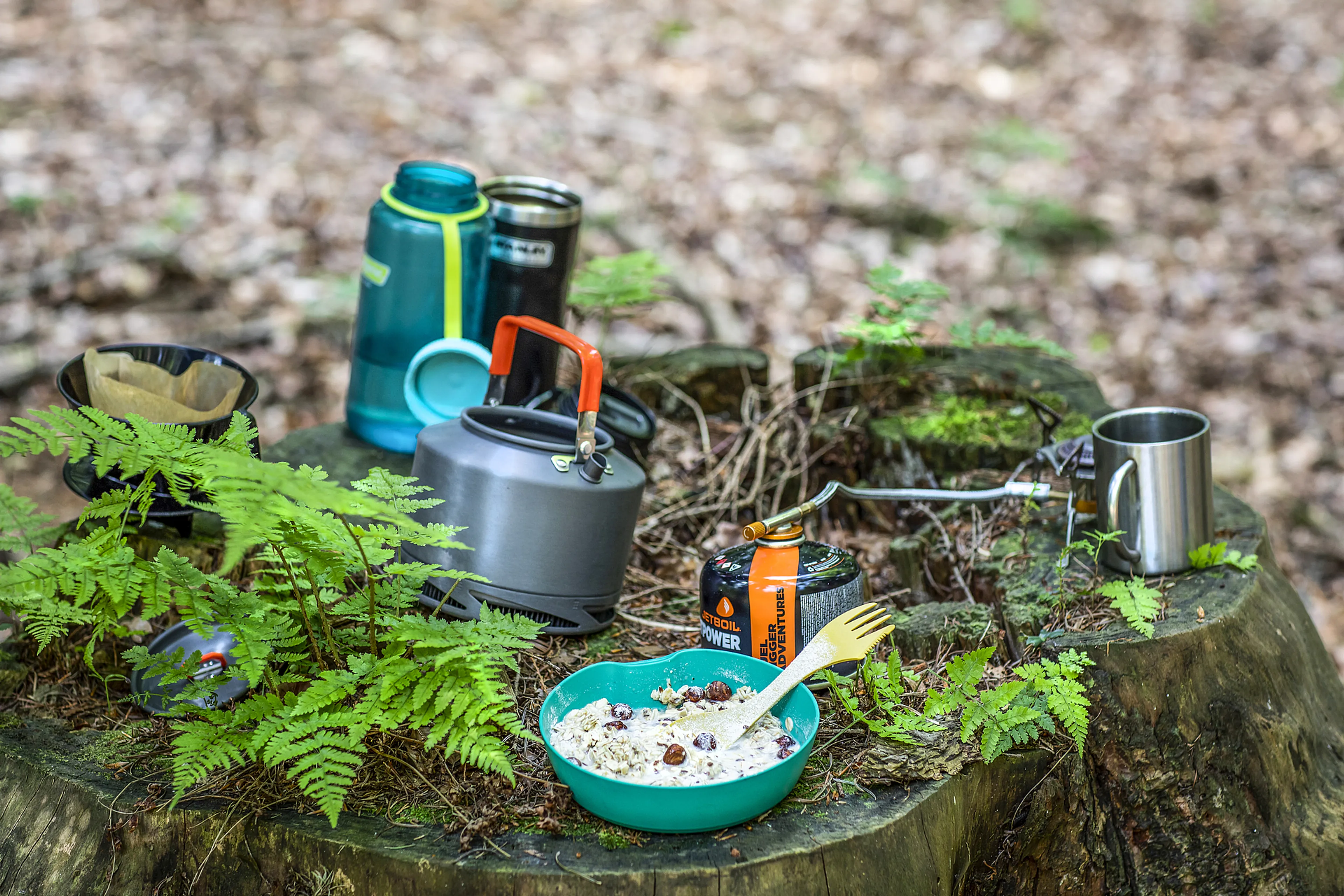 “Wanneer ik een paar dagen ga hiken, neem ik een backpack mee. In die tas past relatief weinig, daarom moet alles wat ik meeneem zo klein mogelijk zijn. Ik heb een opvouwbaar pitje, een klein gasbusje en een kannetje dat je op het pitje kunt klikken. Dit kannetje is je pan en bord ineen. Dat is alles wat je nodig hebt om je eten warm te maken.