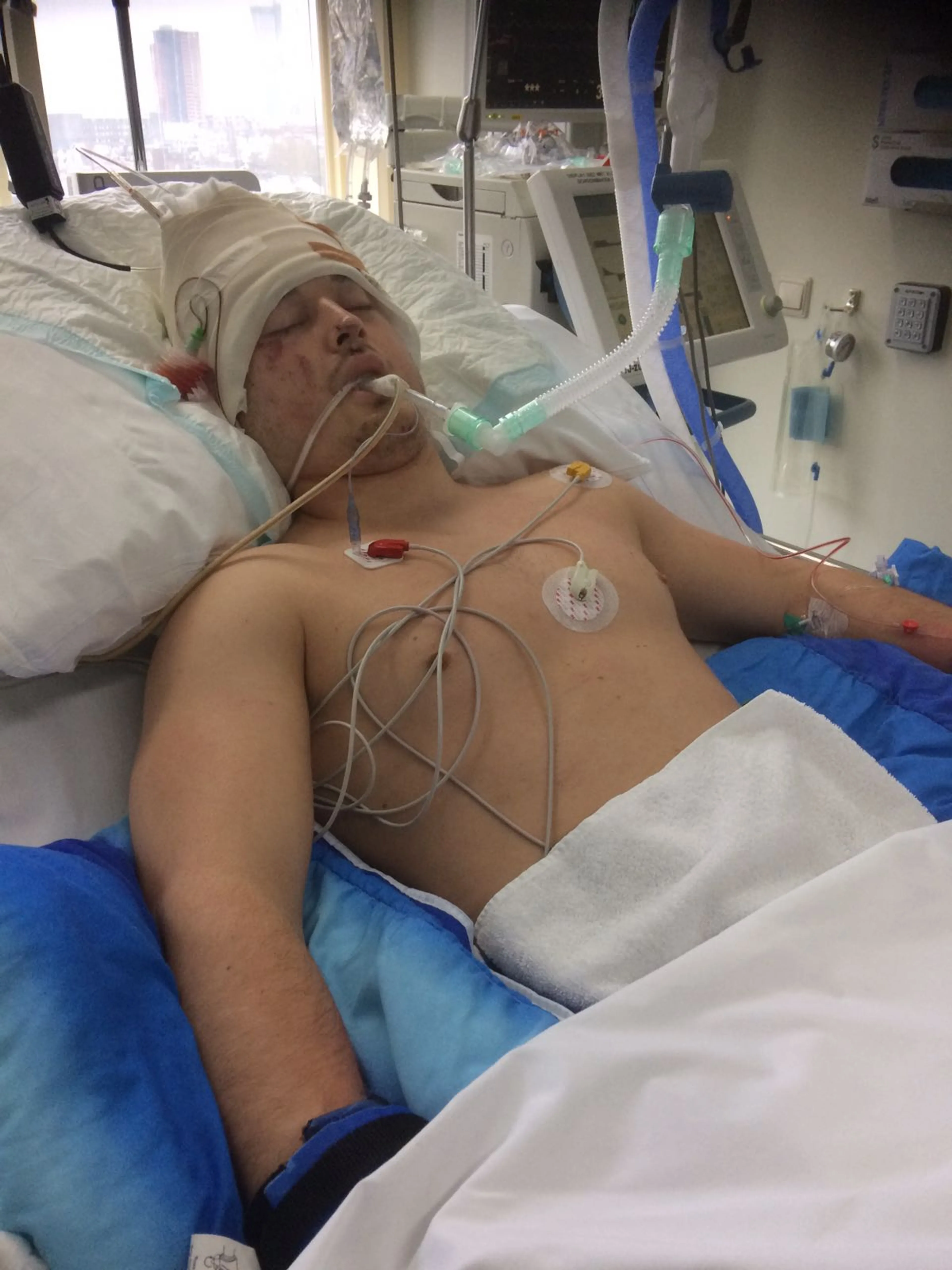 Mike wordt vervolgens met loeiende sirenes in de ambulance naar de intensive care gebracht. Ze proberen hem meerdere malen wakker te maken, maar Mike blijft in coma. ‘’De kans dat ik wakker zou worden, was er eigenlijk niet’’, geeft hij aan. De dokter vraagt hem in zijn hand te knijpen. ‘’Dat kon niet, want wat bleek: ik had een hersenbloeding gehad waardoor mijn hele rechterkant verlamd was geraakt.’’ Dat wist de dokter toen nog niet.