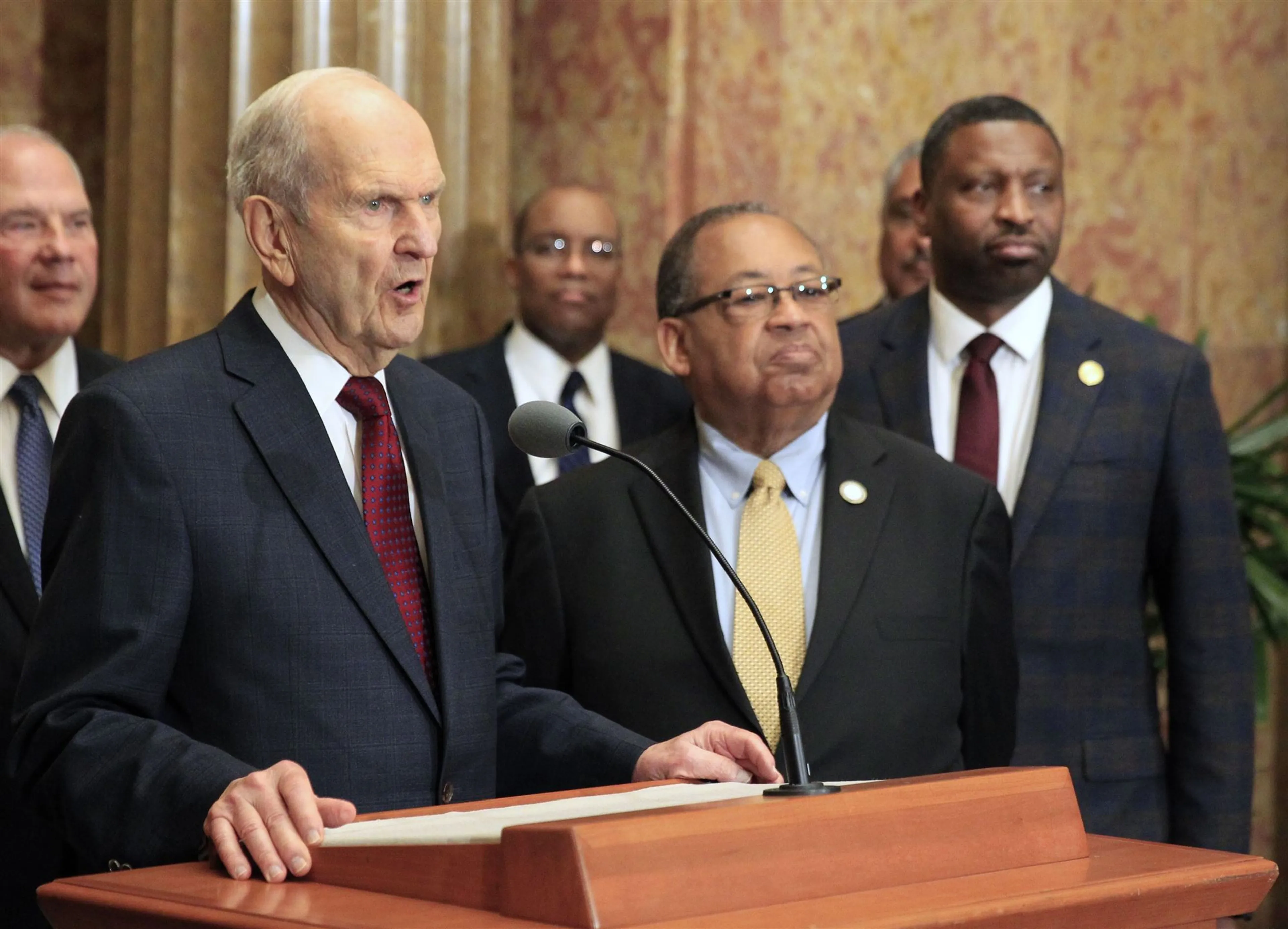Mormonen geloven dat hun 93-jarige leider Russell Nelson – als opvolger van de stichter Joseph Smith – de vertegenwoordiger van God op aarde is. Volgens kenners wil Nelson benadrukken dat de kerk geen sekte is, maar een christelijke gemeenschap.