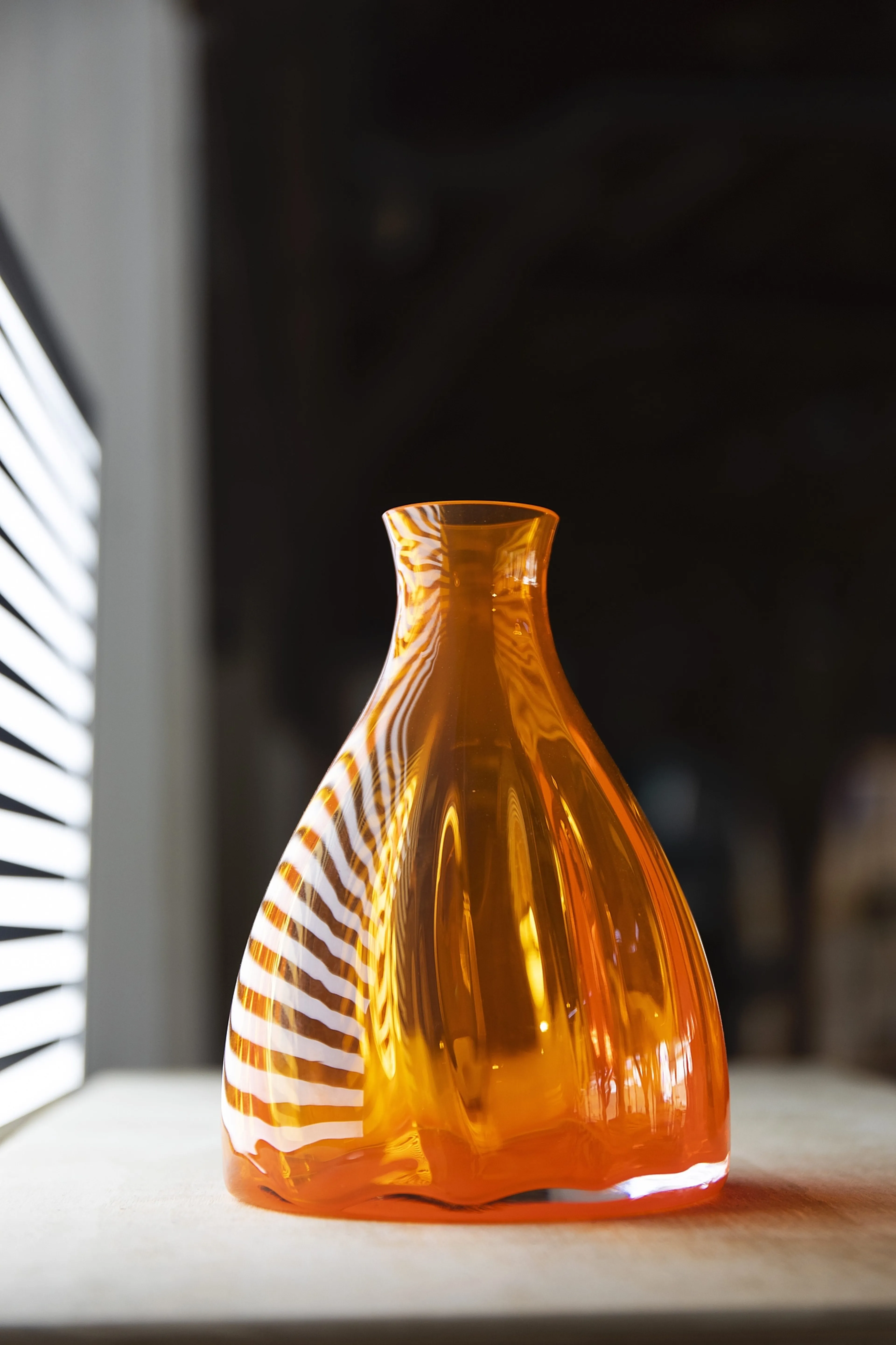 “Je begint met een lege blaaspijp: niks, dus,” zegt hij. “En daarmee loop je naar een oven vol gesmolten glas. Glas, dat is op zichzelf ook ‘niks’: niet meer dan een natuurproduct. Maar zodra je die twee dingen met elkaar in contact brengt, begint voor mij de magie van het creëren van schoonheid. In feite is het een kwestie van iets uit niets maken, met behulp van vuur, glas en je adem. Ik zit nu 35 jaar in dit vak, en die magie voel ik nog altijd. Als dat gevoel ooit zou verdwijnen, moet ik echt een andere baan gaan zoeken.”