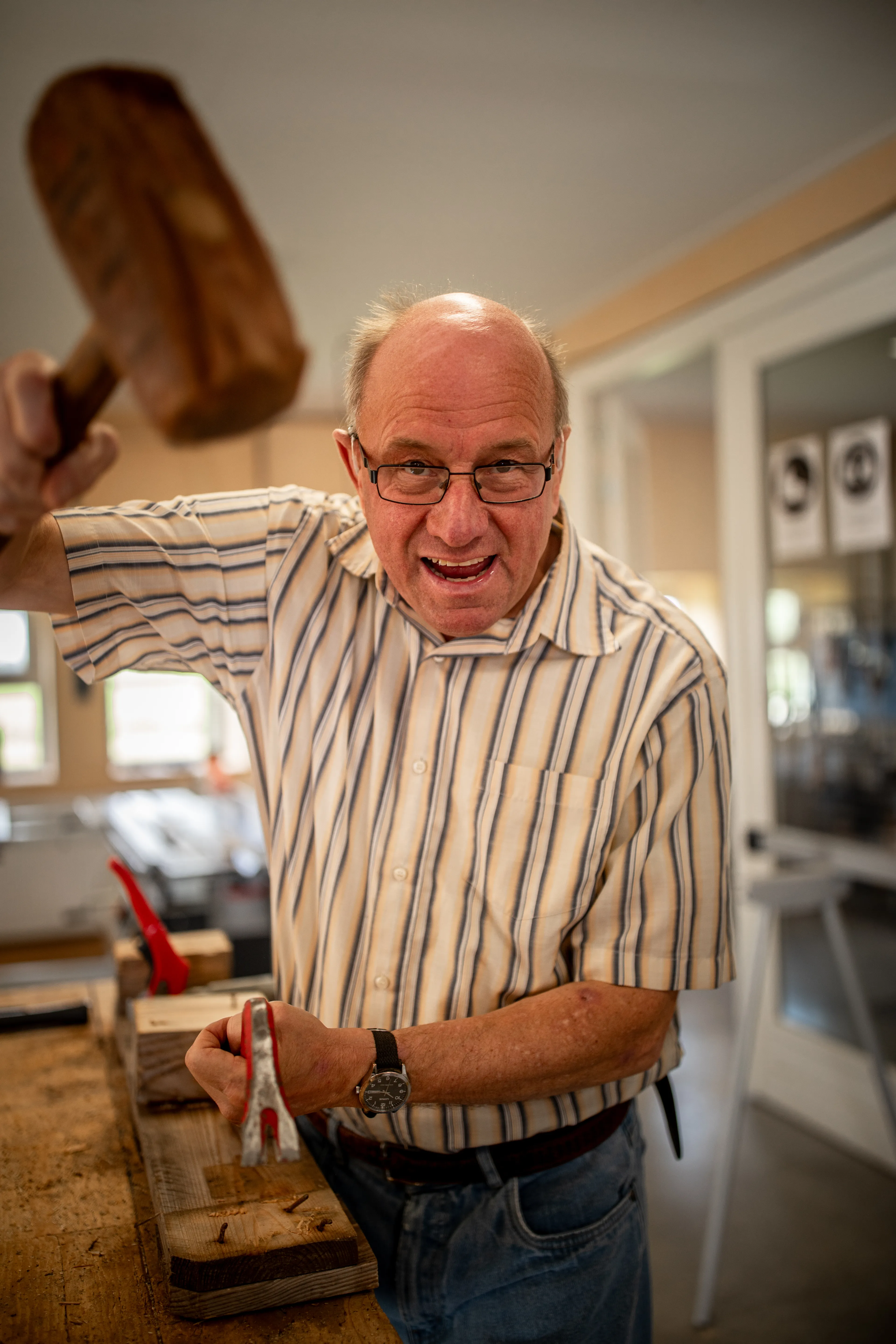 Met een klauwhamer trekt Jan spijkers uit pallethout. Rechte exemplaren stopt hij in het ene bakje, kromme in het andere. Ook Rembrandt, Diana, Kars en René doen hier kleine klusjes, zoals het gladschaven van houten latten. Jannes trekt oranje werkhandschoenen aan (“tegen de splinters”). Terwijl Martine planken inkort met een snerpende zaagmachine, stapelt hij het resterende hout geroutineerd in een kratje. Beiden dragen gehoorbeschermers, en zijn goed op elkaar ingewerkt. “Jannes is bijna niet bij te houden, zoals jullie zien”, prijst Martine hem na afloop. “Je doet het echt super!”