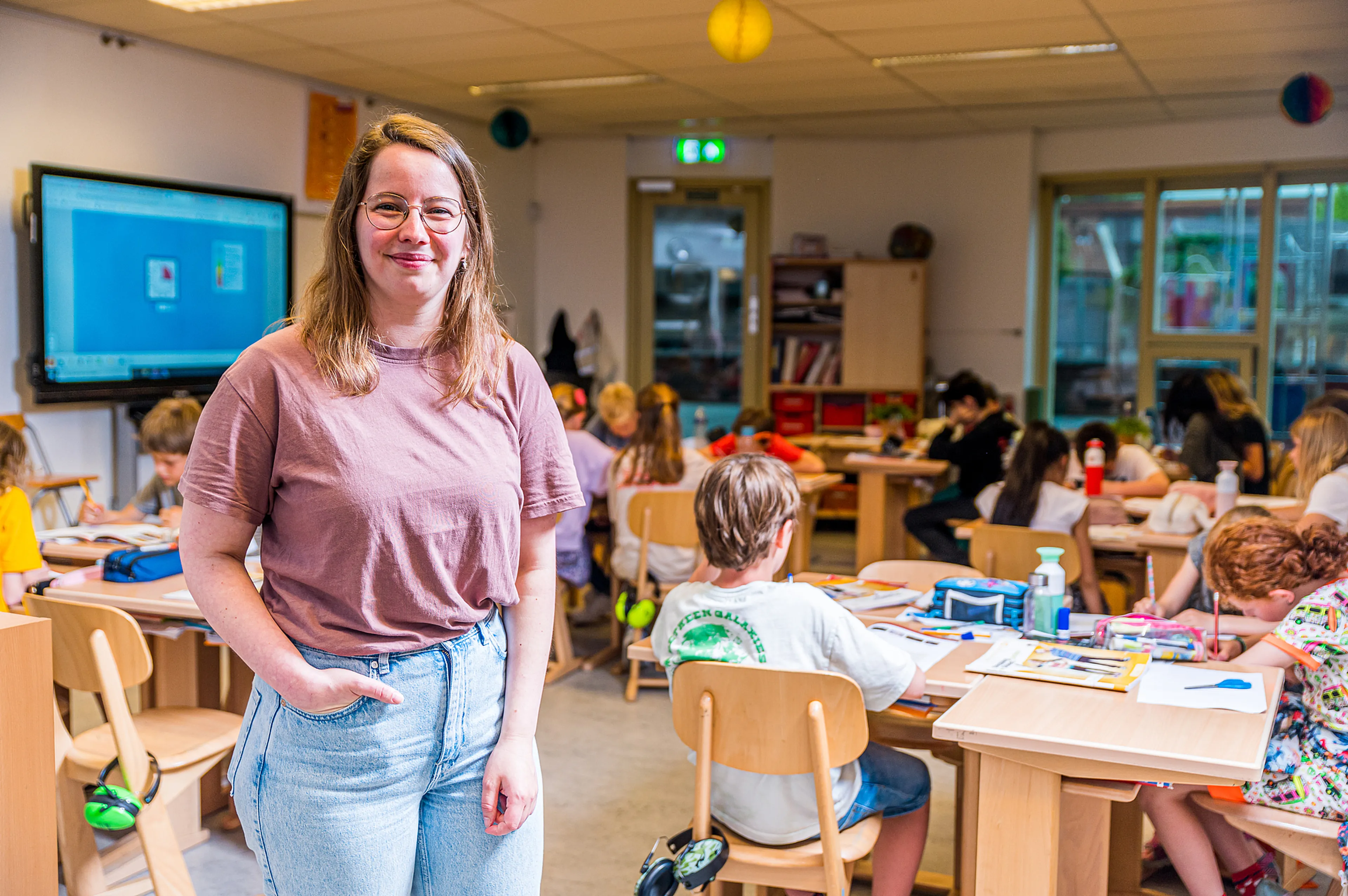 Rachel van Eck (27) geeft les aan groep 6 en 7 van basisschool De Ridderhof in Utrecht. “Ik vind het mooi om met de kinderen in gesprek te gaan over geloven.”