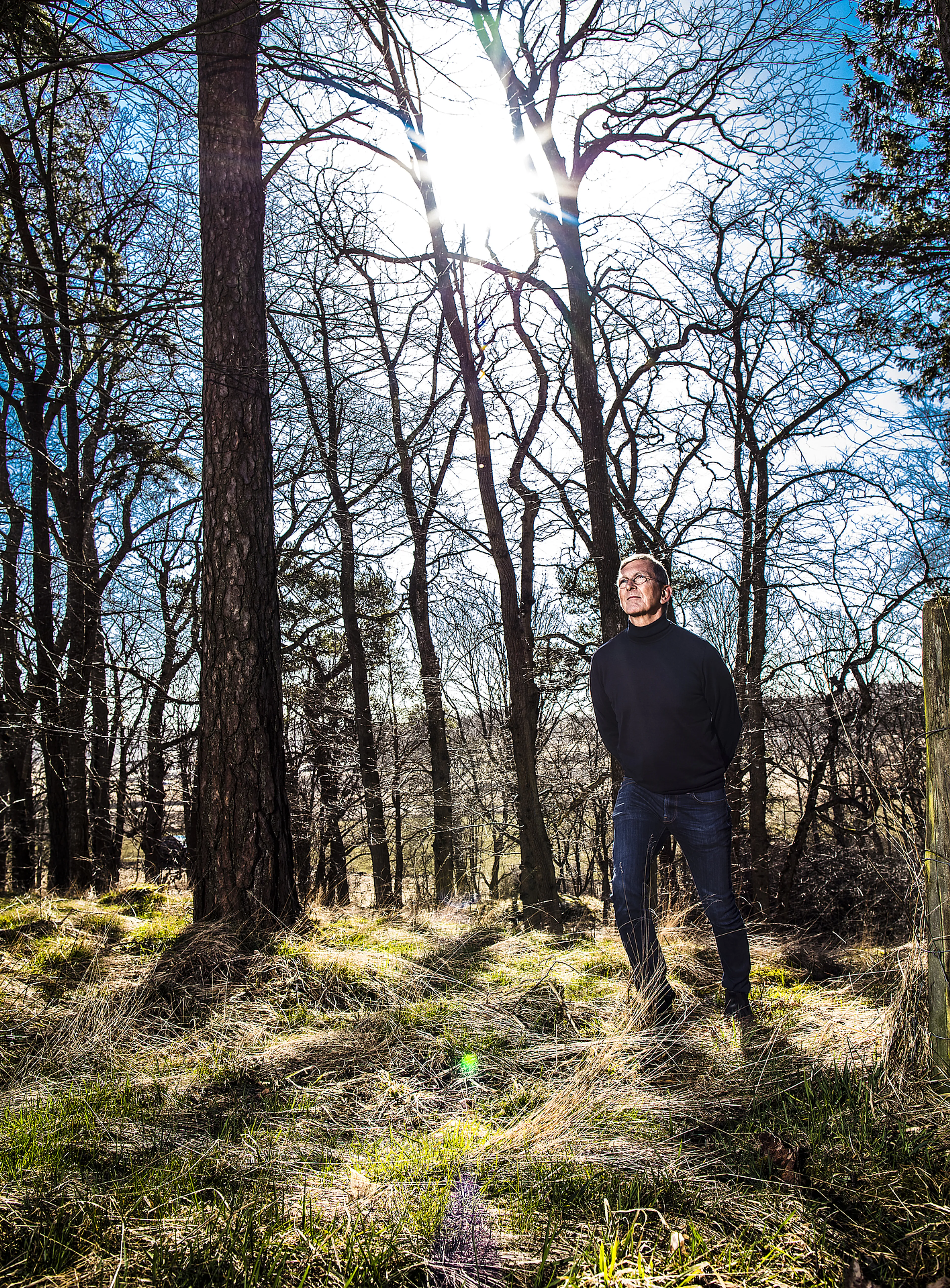 Hun ruime woning staat op een heuveltje, dicht bij de uitgestrekte bossen waarin hij graag wandelt. Als je door de zijramen naar buiten kijkt, zie je het zacht glooiende dennenwoud een paar honderd meter verderop liggen.