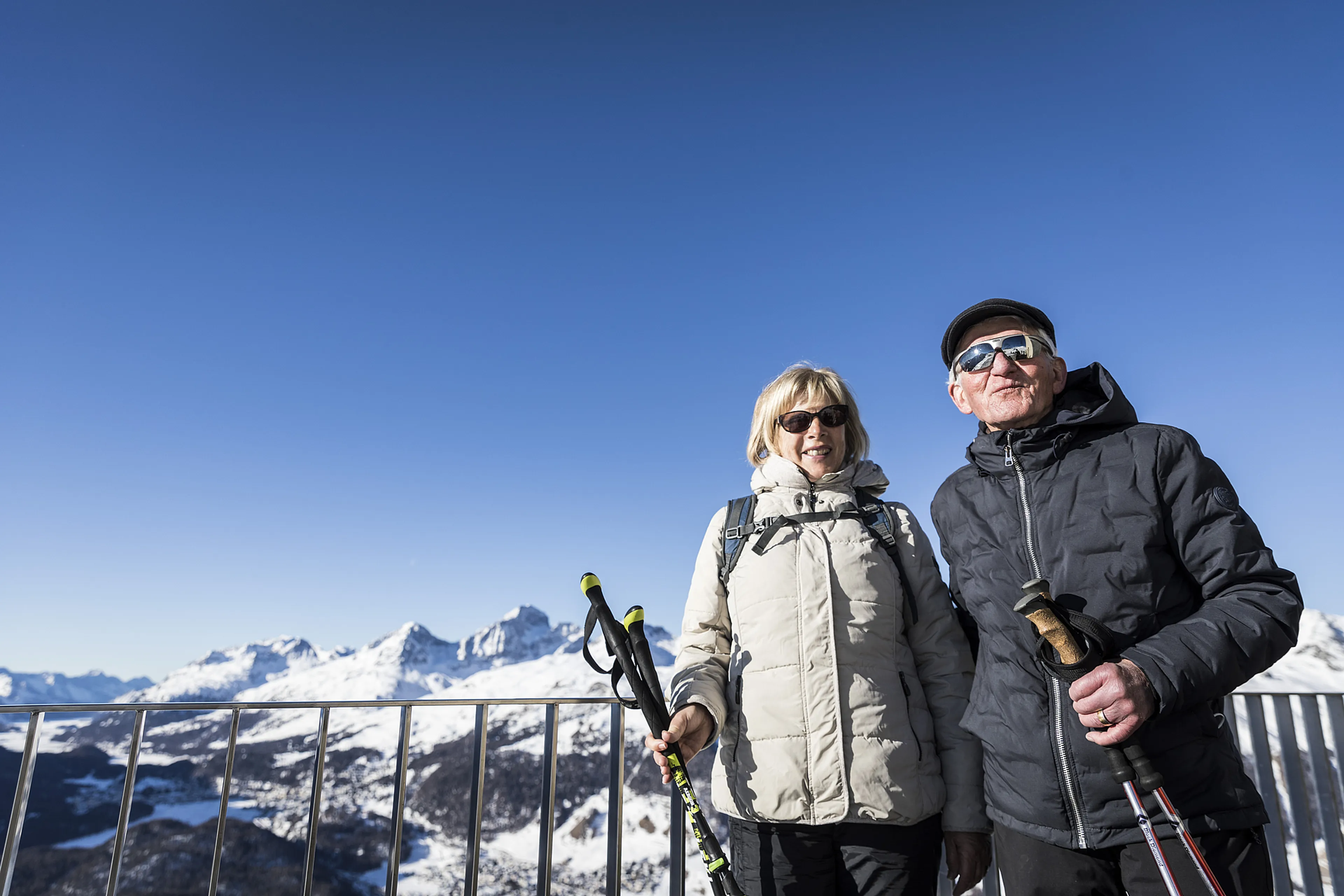 “Nog bedankt dat je even opzij ging,” zegt een meneer op leeftijd tegen Ruben als we zijn uitgestapt. Oeps, bedoelt hij het cynisch? Maar nee, de man die zich voorstelt als Alberto uit Luzern, lacht. “Serieus hoor, precies op het juiste ogenblik kreeg ik het uitzicht waar ik op hoopte.” Zijn vrouw Margot begint een gezellig praatje: “Hoewel we in Zwitserland wonen, zijn we nog niet zo vaak in Graubünden geweest. Ook als skiën je niet trekt, heb je hier in de winter veel mogelijkheden. Lopen jullie hier ook het Filosofenpad?”