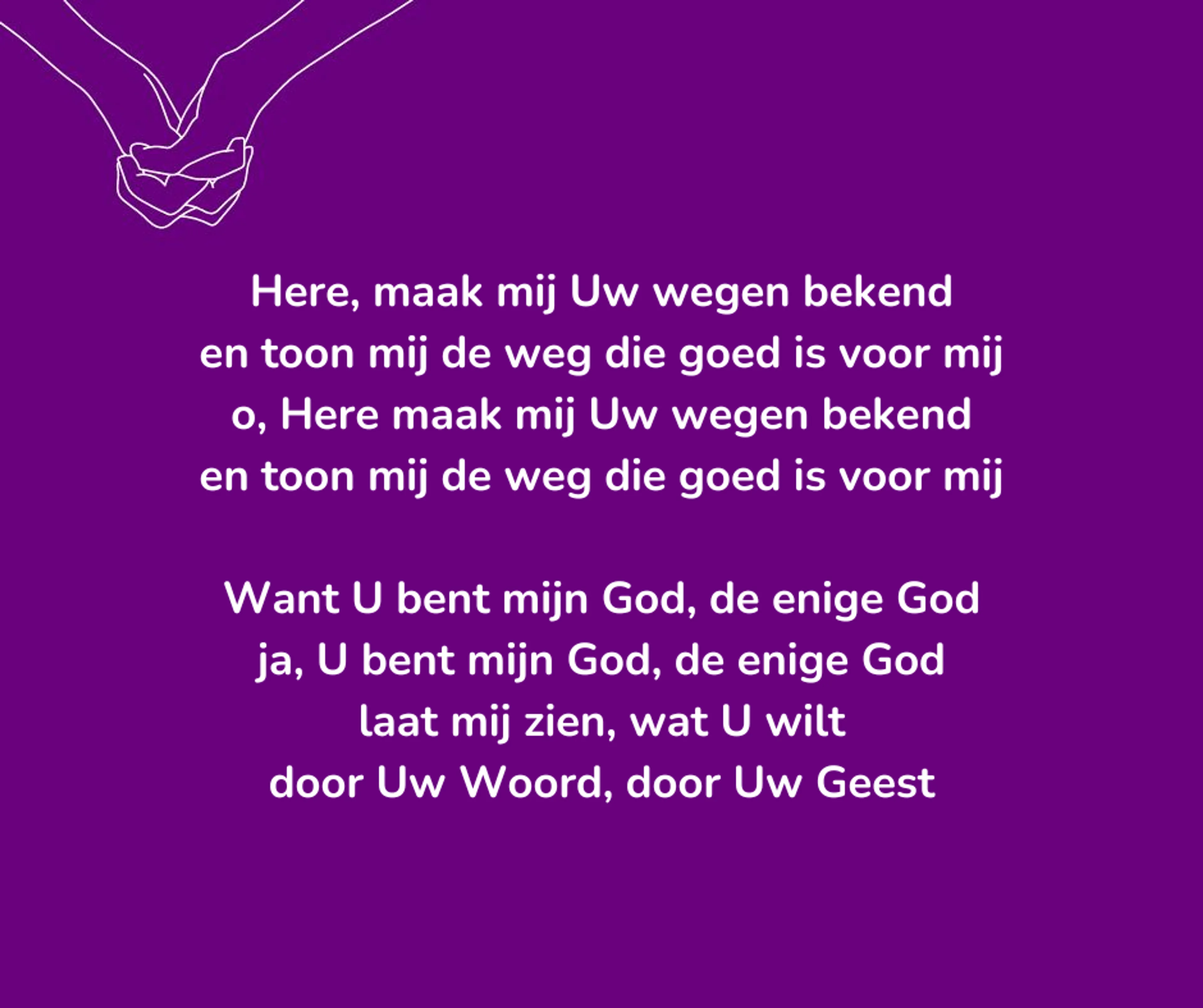 “Als ik dit lied zing, is het niet zo dat ik daarna ineens weet wat ik moet doen of kiezen in een bepaalde situatie. Als tiener dacht ik: God heeft een plan met mijn leven. Hij weet wat ik ga studeren en wat ik dan daarmee ga doen. Maar ik ben steeds minder gaan geloven dat God je leven helemaal tot aan het eind heeft uitgedacht. Als mens krijgen we daar volgens mij heel veel ruimte in. Toch wil ik wel goed omgaan met die ruimte. Ik wil steeds op zoek naar een manier van leven die past bij Gods weg met mensen en met de wereld. Daarbij volg ik wat God in mij heeft gelegd en waar mijn hart het meest voor klopt. En dan vertrouw ik erop dat God dat gebruikt of aanmoedigt.”