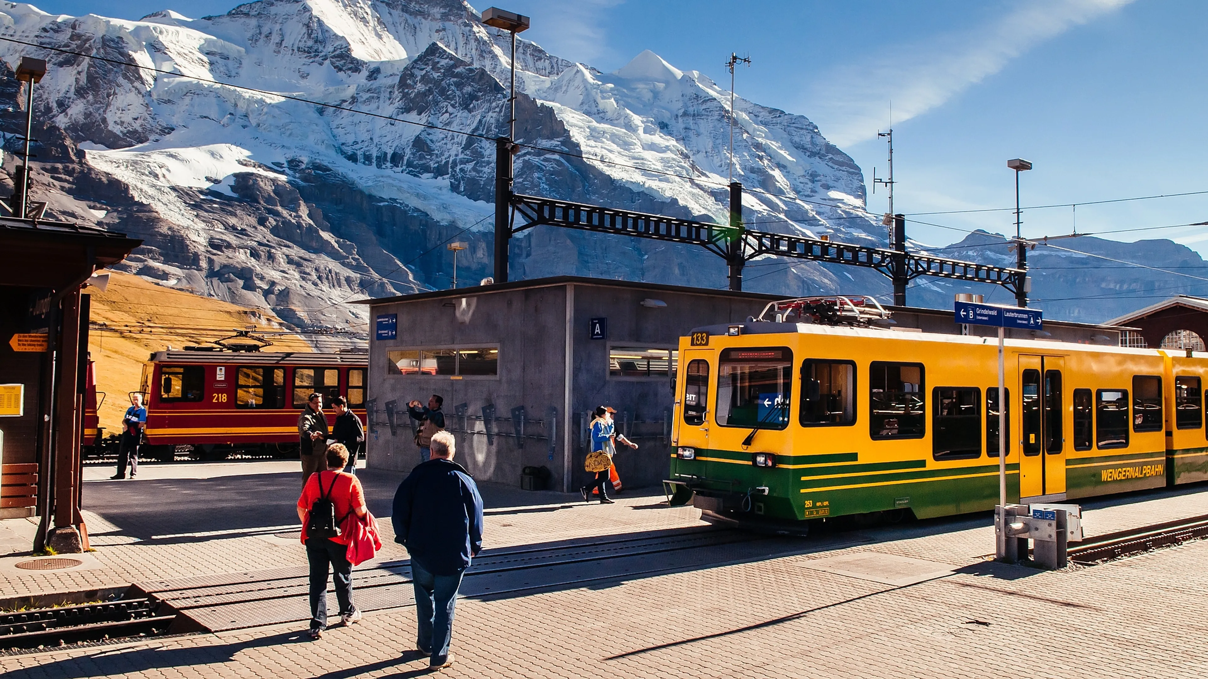 Op 2000 meter hoogte stappen de reizigers de trein uit in Kleine Scheidegg, een groot wintersportcentrum. Deze plek biedt uitzicht op bergreuzen als de Mönch, de Eiger en de Jungfrau. Velen van de reizigers gaan niet terug per trein, maar op eigen kracht. Want waarom zou je met de trein gaan als je ook per ski of slee kunt?