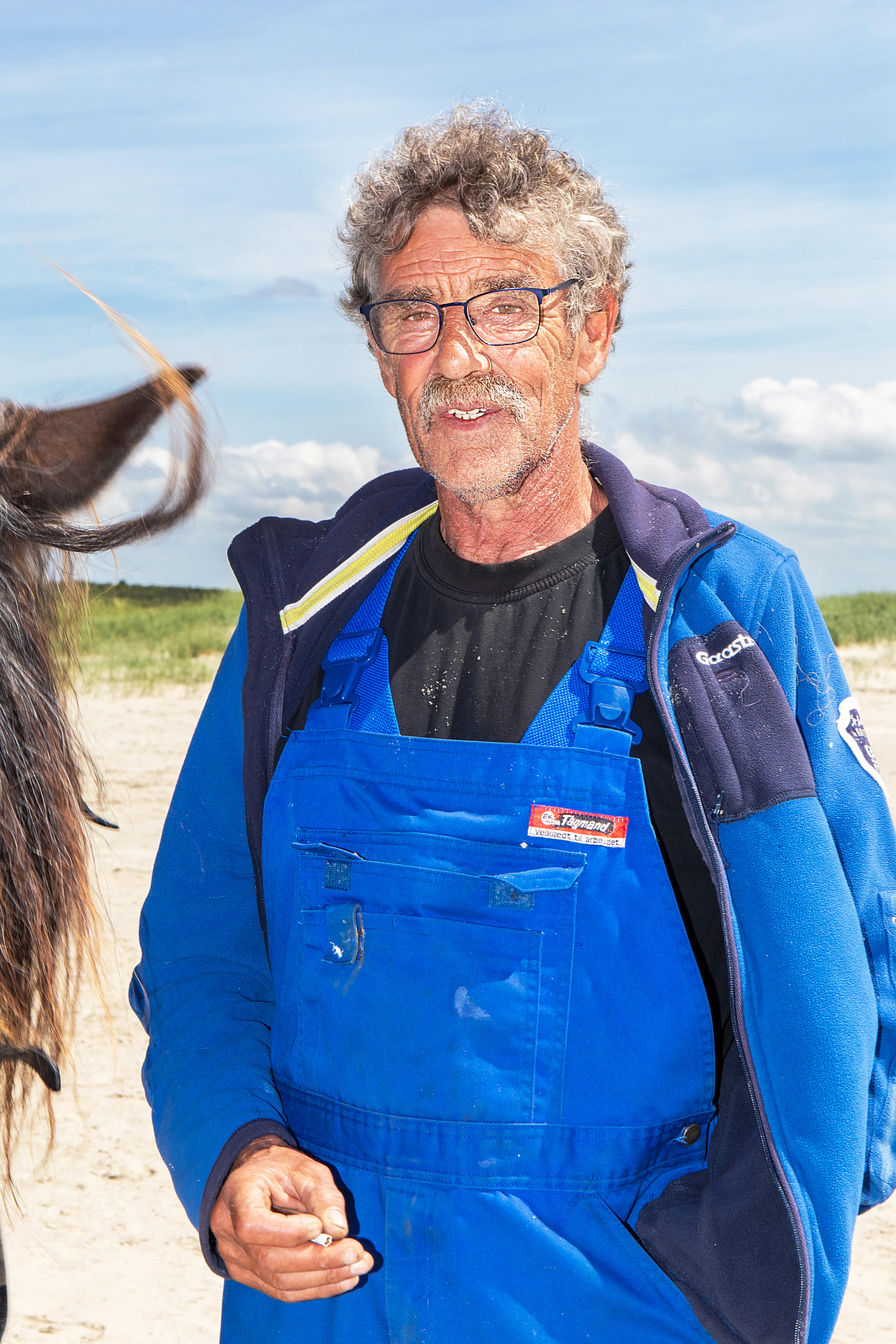 “Opletten mensen, we gaan even in volle vaart omhoog,” roept Jan terwijl hij de paarden aanmoedigt. “Ze kennen de stukken waar het sneller moet precies. Als ik hier in hetzelfde tempo zou blijven lopen, is het veel zwaarder voor ze.” Voor we het weten, zijn we op het wad. Een immense zandvlakte strekt zich voor ons uit en wij strekken de benen en staren met dichtgeknepen ogen naar de zee in de verte. “Vanaf hier zien we zowel het vasteland als Ameland,” wijst Jan. O, en of we de paarden niet willen voeren. Hij heeft in zijn decennialange loopbaan weleens meegemaakt dat een toerist er een vinger door verloor…